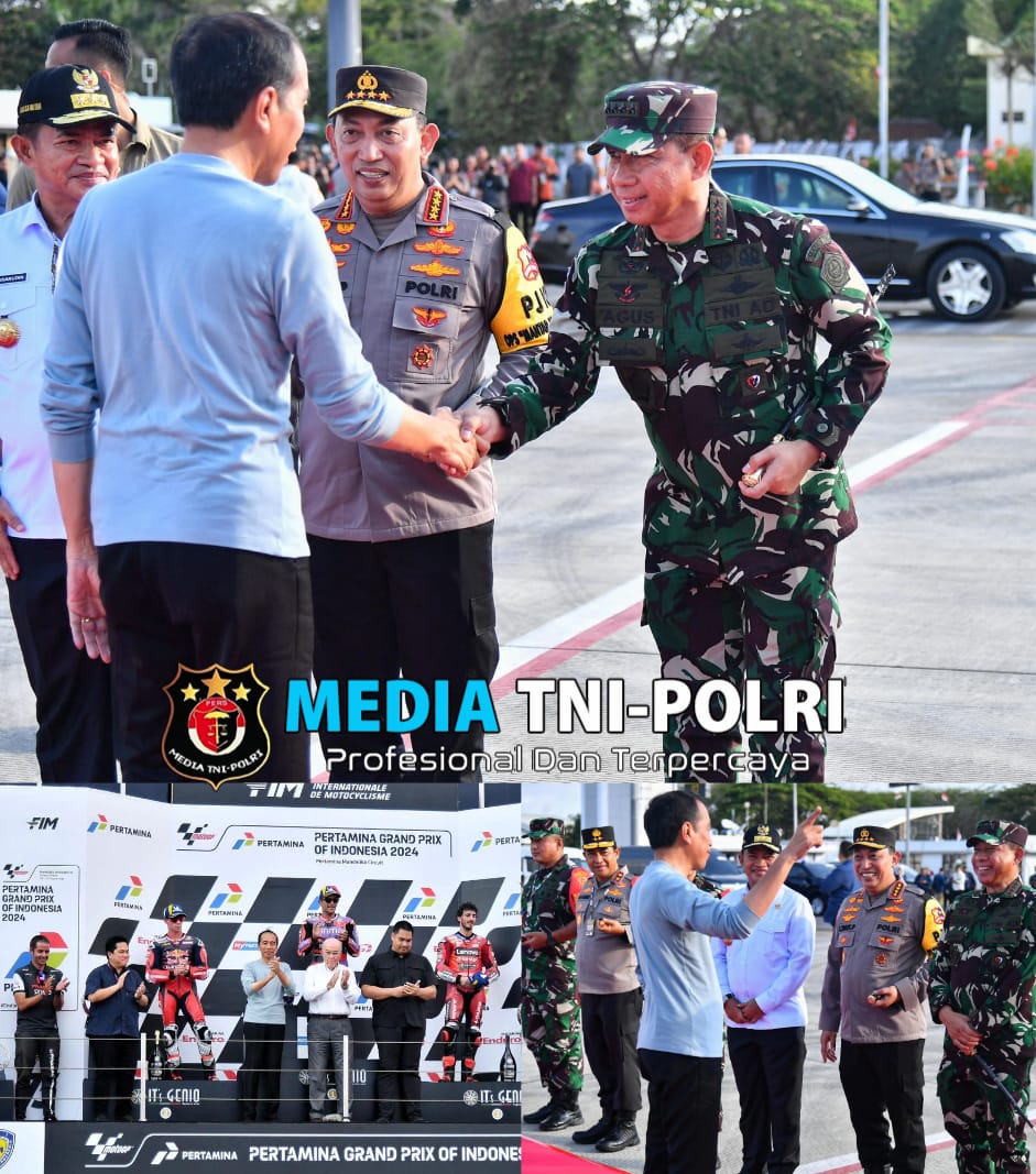MANDALIKA, NTB // MEDIATNI-POLRI.COM / Panglima TNI Jenderal TNI Agus Subiyanto mendampingi Presiden RI Joko Widodo menyaksikan secara langsung final race MotoGP 2024 di Sirkuit Internasional Mandalika, Lombok Tengah Nusa Tenggara Barat, Minggu (29/9/2024).
