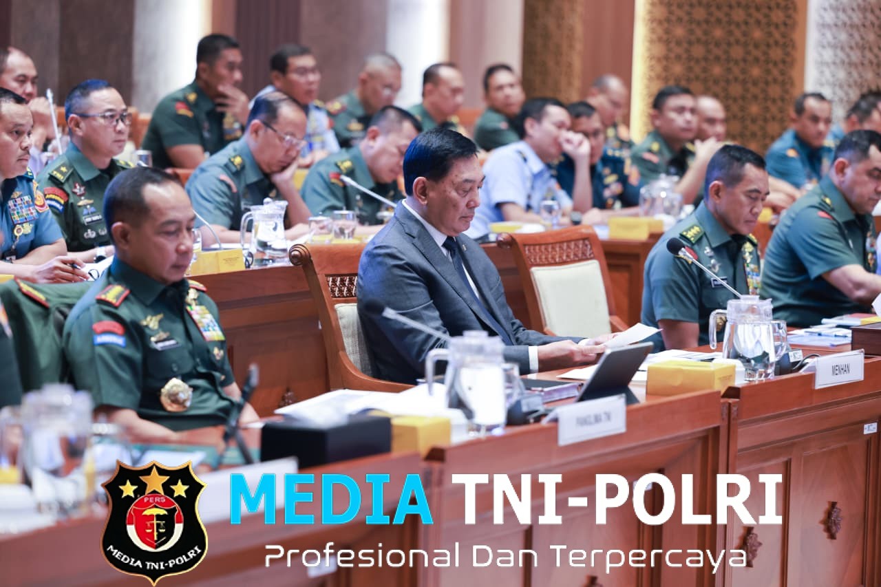 JAKARTA PUSAT // MEDIATNI-POLRI.COM / (Puspen TNI). Panglima TNI Jenderal TNI Agus Subiyanto bersama Menteri Pertahanan (Menhan) RI Sjafrie Sjamsoeddin, didampingi para Kepala Staf Angkatan, menghadiri rapat kerja bersama Komisi I DPR RI.