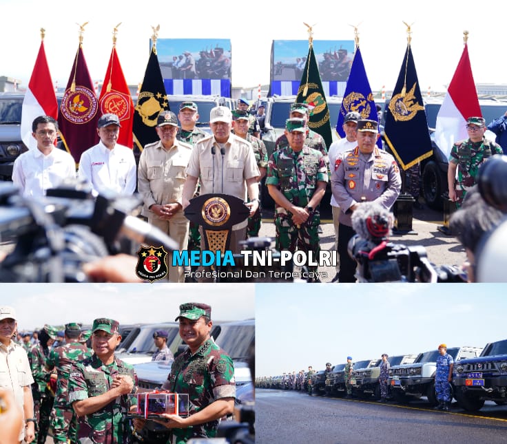 BANDUNG // MEDIATNI-POLRI.COM / (Puspen TNI). Panglima TNI Jenderal TNI Agus Subiyanto bersama Kapolri Jenderal Pol. Listyo Sigit Prabowo menerima penyerahan Kendaraan Khusus (Ransus) Maung MV3 buatan PT. Pindad yang dilakukan secara simbolis oleh Menteri Pertahanan (Menhan) RI Sjafrie Sjamsoeddin,