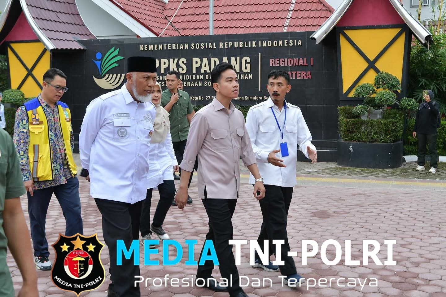 PADANG // MEDIATNI-POLRI.COM / Wakil Presiden (Wapres) Gibran Rakabuming meninjau Sekolah Rakyat Menengah Pertama (SRMP) 4 Padang yang berlokasi di Balai Besar Pendidikan dan Pelatihan Kesejahteraan Sosial (BBPPKS) Padang, Sumatera Barat, Rabu (30/07/2025).