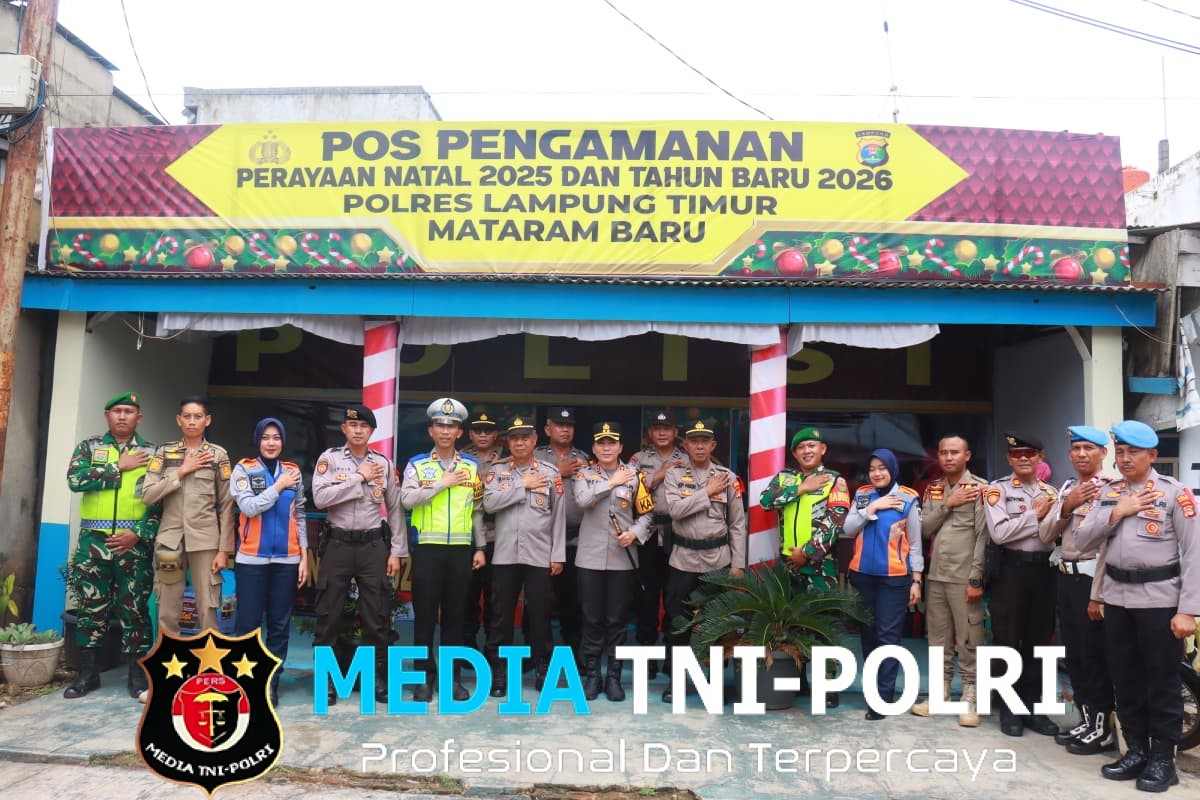 LAMPUNG TIMUR // MEDIATNI-POLRI.COM / Kapolres Lampung Timur AKBP Heti Patmawati melaksanakan kunjungan ke sejumlah Pos Pengamanan (Pos Pam) Operasi Lilin dalam rangka pengamanan Natal dan Tahun Baru (Nataru) 2025, Sabtu (27/12/2025).
