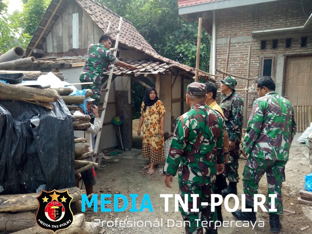 Dengan membawa peralatan pertukangan, para prajurit TNI bahu membahu bersama warga memperbaiki rumah yang kondisinya memprihatinkan.