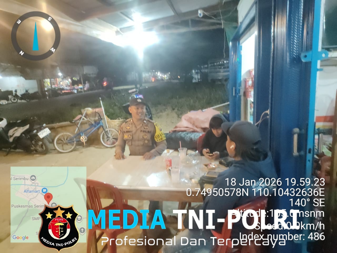 jajaran Polsek Air Besar melaksanakan patroli malam dialogis dengan menyambangi warga yang masih beraktivitas, Sabtu malam (18/1/2026).