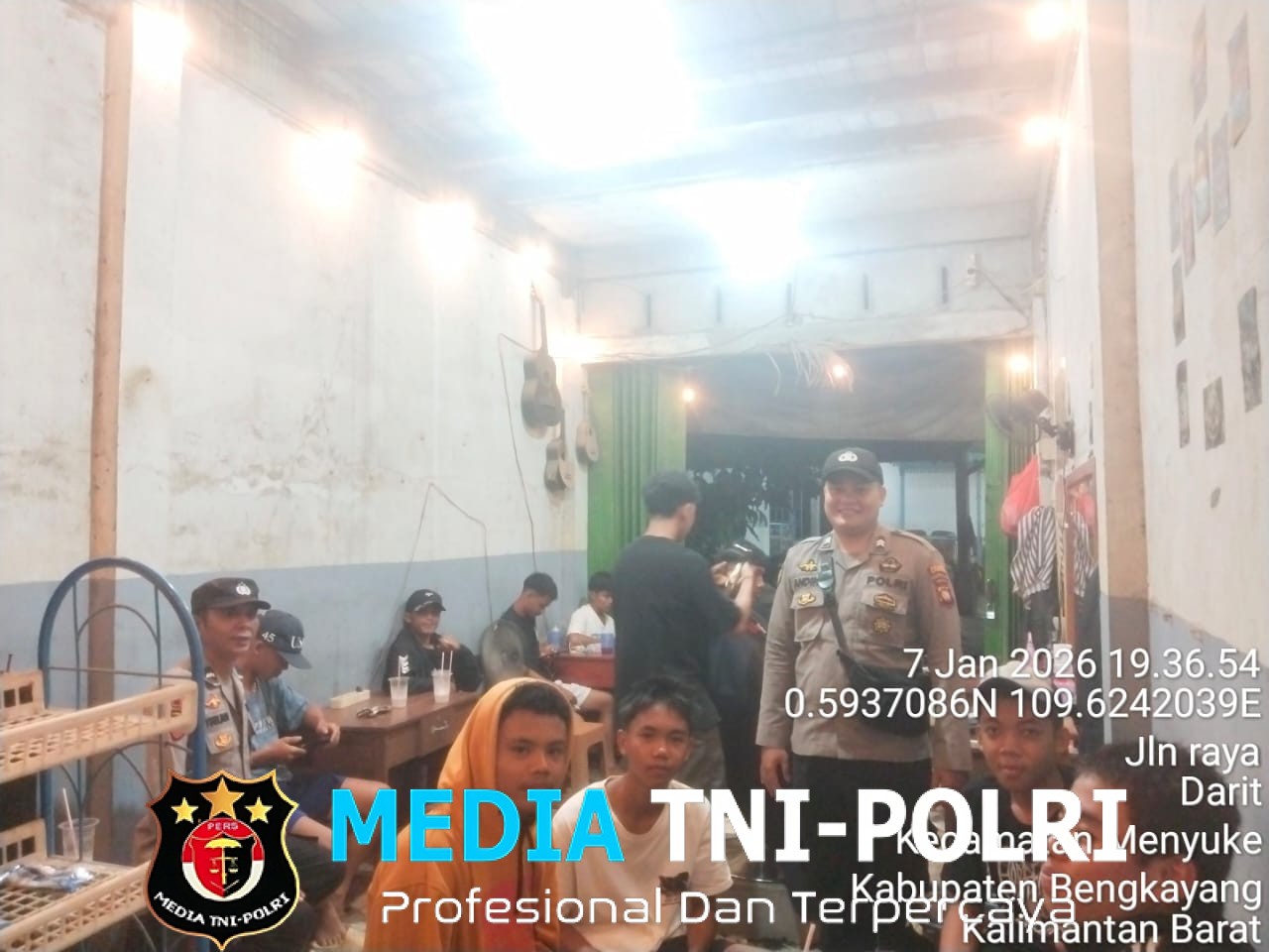 LANDAK // MEDIATNI-POLRI.COM / Agar situasi tetap aman dan kondusif Kepala sentral pelayanan kepolisian terpadu regu I Polsek Menyule Polres Landak dan Anggota melaksanakan kegiatan patroli malam hari dan menyambangi warga yang sedang santai guna mengantisipasi tindak kriminalitas atau tindak kejahatanlainnya di malam hari, di Desa Darit, Rabu (07/01/2026) malam.