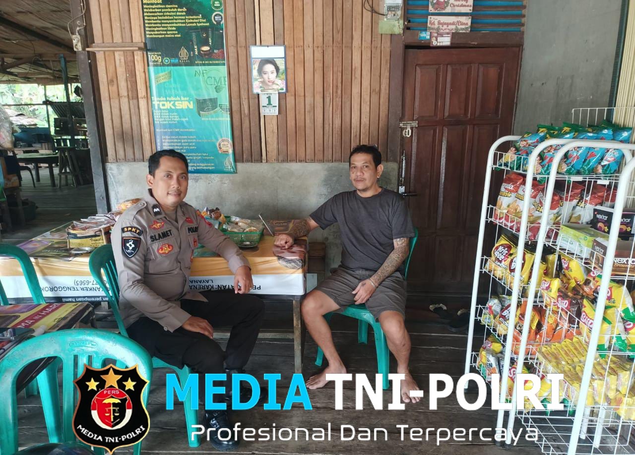 LANDAK // MEDIATNI-POLRI.COM / Personil Polsek Menjalin Polres Landak Polda Kalbar Ps. SPKT II Aipda Slamet Dahroini, melaksanakan kegiatan rutin patroli sambang warga dan sampaikan pesan kamtibmas. Kamis (02/10/2025).