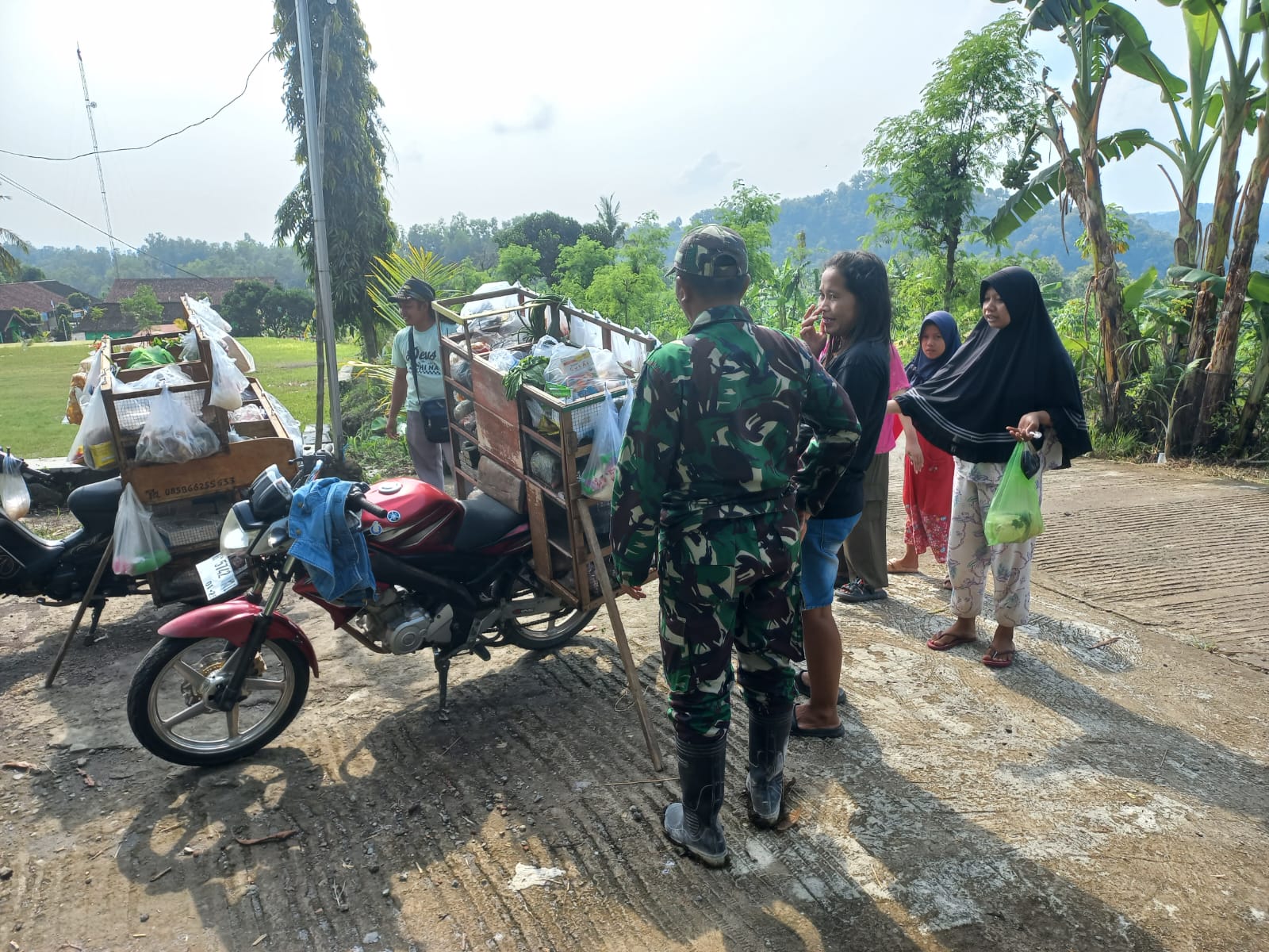 Personel satgas TMMD Sertu Joko Prasetyo setiap harinya berbelanja kebutuhan dapur bersama Ibu-ibu untuk memilih sayur mayur dan lauk pauk yang akan dimasak hari ini.