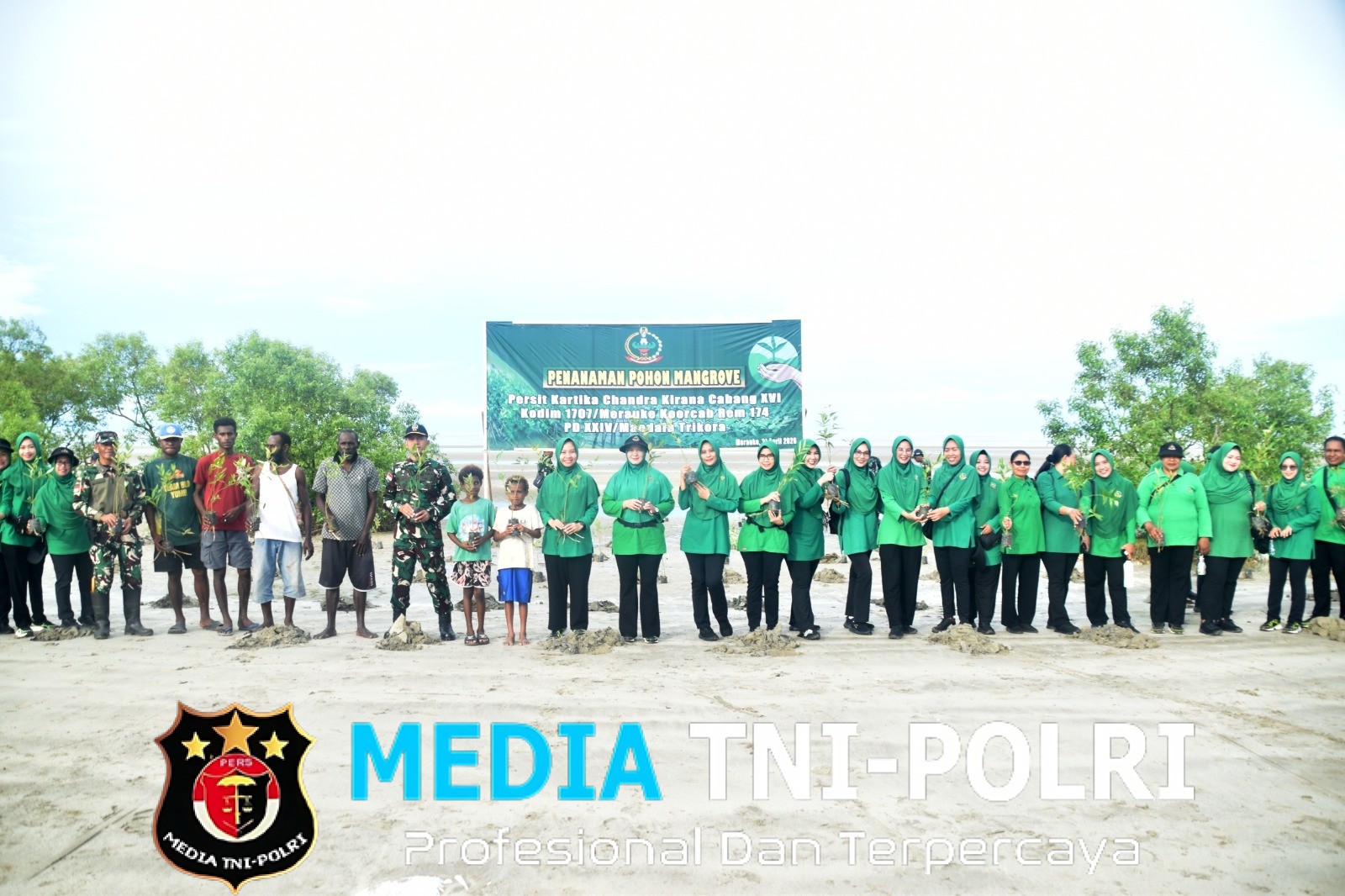 MERAUKE //MEDIATNI-POLRI.COM / Aksi nyata kepedulian terhadap lingkungan kembali ditunjukkan oleh Persit Kartika Chandra Kirana Cabang XVI Kodim 1707/Merauke Koorcab Rem 174 PD XXIV/Mandala Trikora melalui kegiatan penanaman pohon mangrove yang berlangsung di Pantai Payum, Kelurahan Samkai, Distrik Merauke, Kab. Merauke – Provinsi Papua Selatan, pada Selasa pagi (21/04/2026).