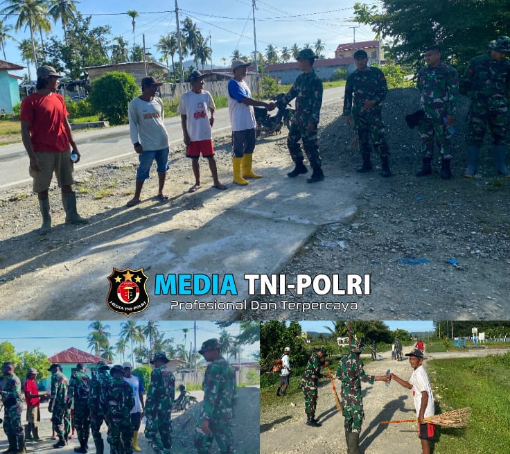 JAYAPURA, PAPUA // MEDIATNI-POLRI.COM /Personel Yonif 751/VJS melaksanakan kegiatan pembinaan teritorial terbatas dengan membersihkan jalan umum,
