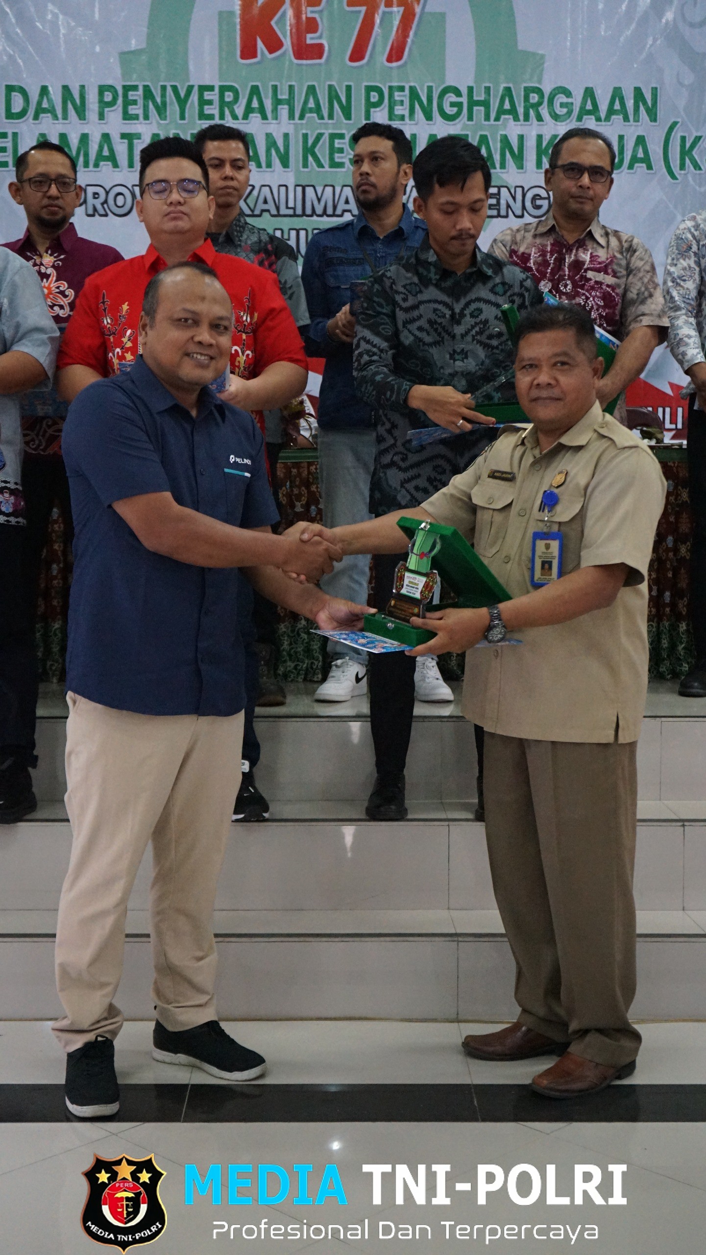 Penghargaan diserahkan oleh Kepala Bidang Pengawasan Ketenagakerjaan Dinas Tenaga Kerja dan Transmigrasi Provinsi Kalimantan Tengah,
