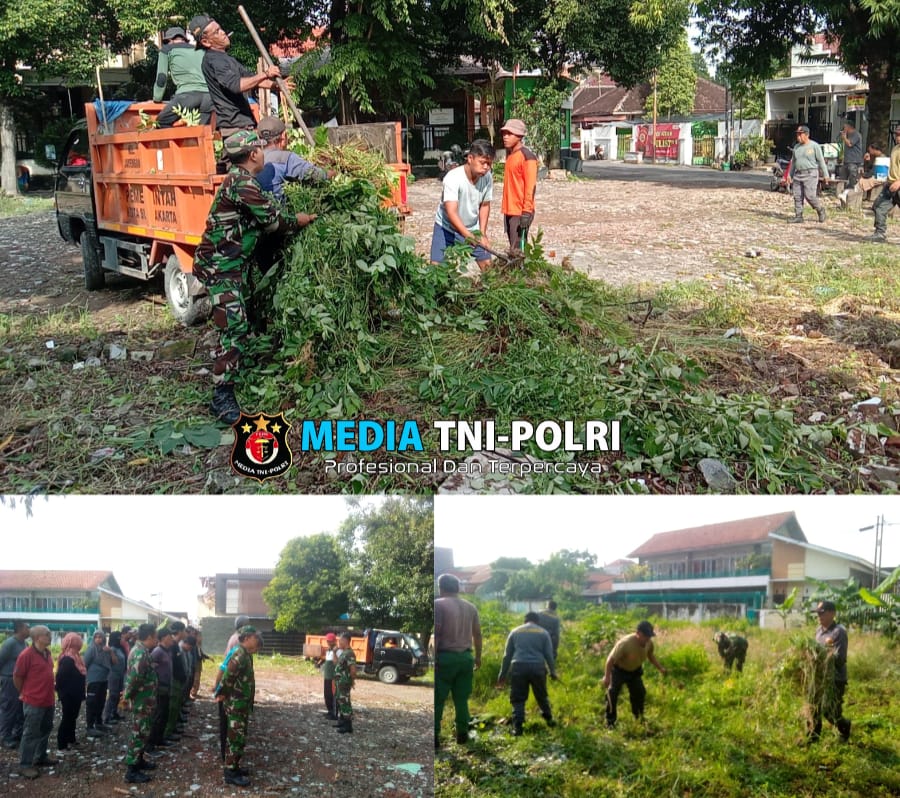 SURAKARTA // MEDIATNI-POLRI.COM / Guna menciptakan lingkungan dan prasarana umum yang bersih dan nyaman bagi masyarakat, Bati Tuud Koramil 03/Serengan Kodim 0735/Surakarta Pelda Sugiyanto bersama anggota, pegawai kelurahan,