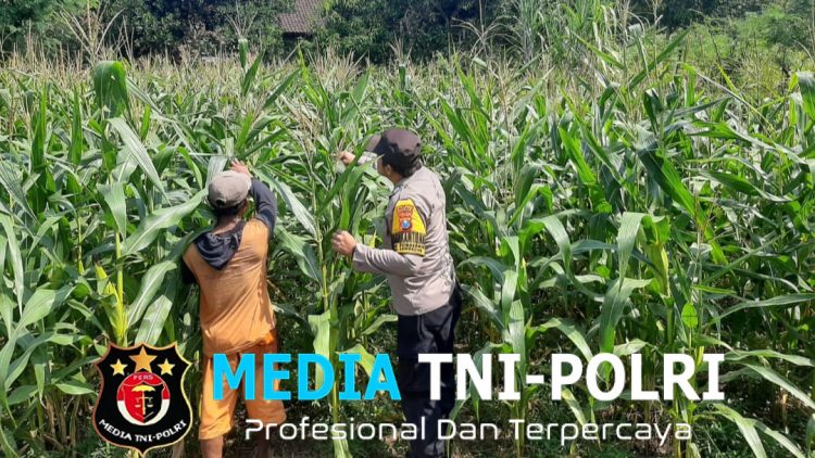 Bripka Aris Yudha Setiyawan, melaksanakan pemantauan terhadap tanaman jagung milik Sdr. Joko Sampur yang sudah berusia 80 hari.