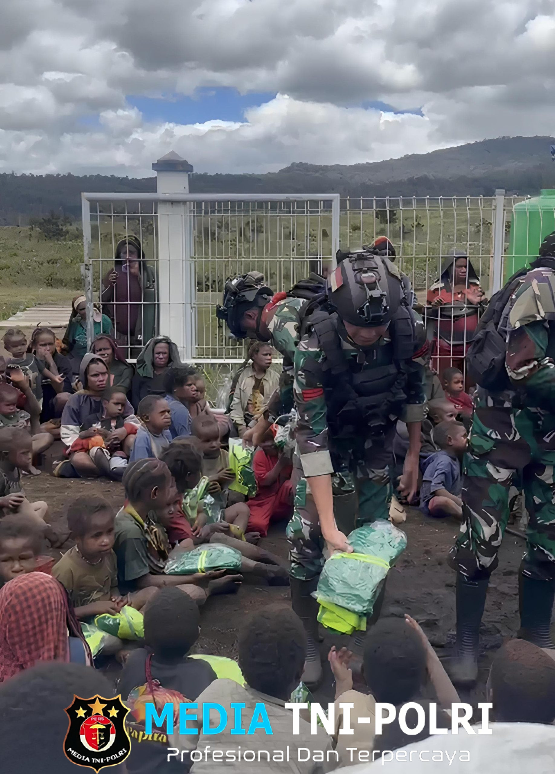 serta seragam sekolah yang disalurkan secara langsung oleh personel Satgas Yonif 751/VJS di Distrik Agandugume, Kabupaten Puncak, Provinsi Papua Tengah. (Senin, 12/05/2025)