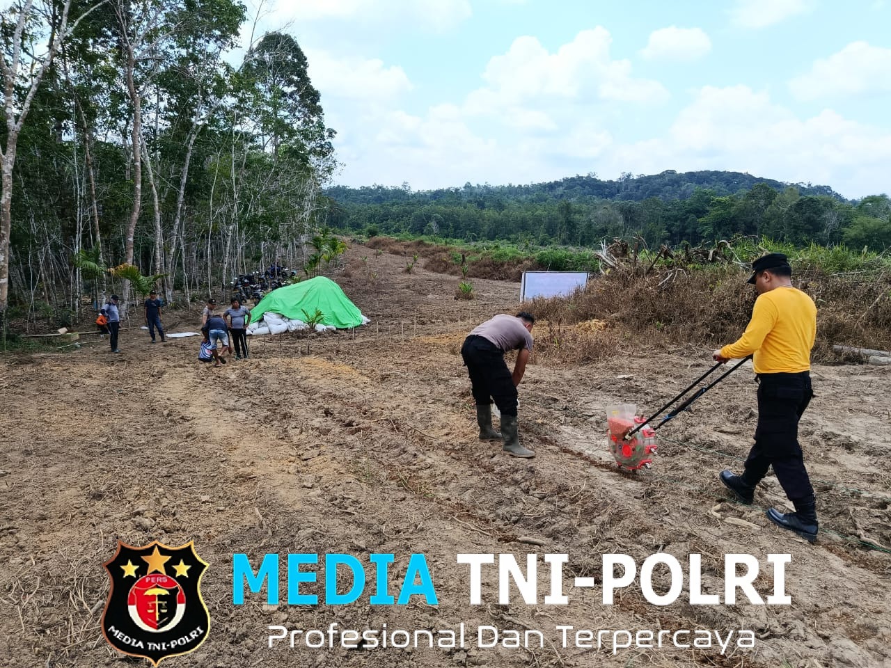 LANDAK // MEDIATNI-POLRI.COM / Dalam upaya mendukung program ketahanan pangan nasional, Polsek Menjalin gelar penanaman jagung di Lahan Perkebunan Jagung Polri Presisi Polres Landak Rajawali Polsek Menjalin.