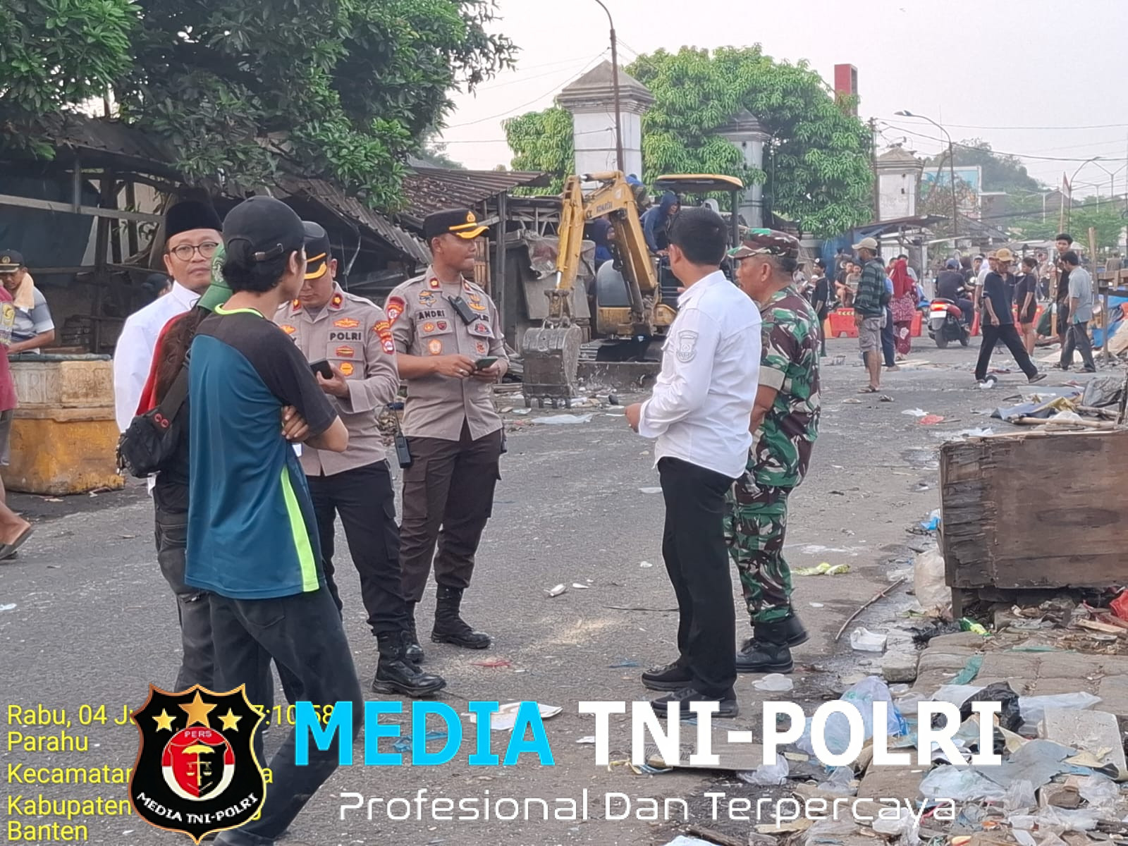 TANGERANG, MEDIATNI-POLRI.COM ~ Jajaran Polresta Tangerang bersama TNI dan Satpol PP melakukan pengamanan dalam kegiatan penataan dan pemindahan lapak Pedagang Kaki Lima (PKL) di area luar Pasar Sentiong, Desa Tobat, Kecamatan Balaraja, Rabu (4/6/2025).
