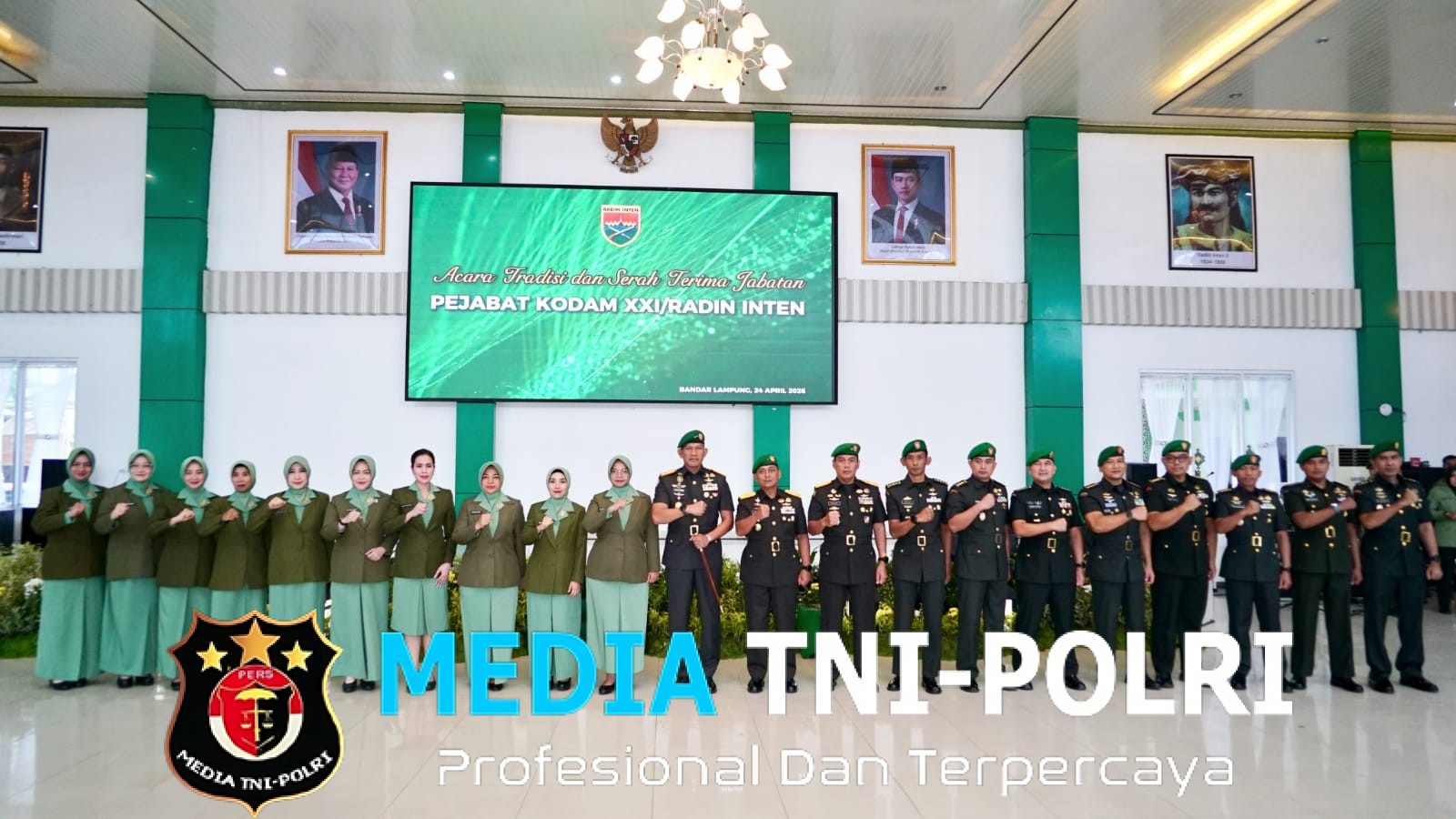 BANDAR LAMPUNG // MEDIATNI-POLRI.COM / Pangdam XXI/Radin Inten, Mayjen TNI Kristomei Sianturi, S.Sos., M.Si. (Han), memimpin langsung Tradisi dan Serah Terima Jabatan (Sertijab) pejabat Kodam XXI/Radin Inten yang dilaksanakan di Aula Sudirman Makodam XXI/Radin Inten, Kota Bandar Lampung, Jumat (24/04/2026).
