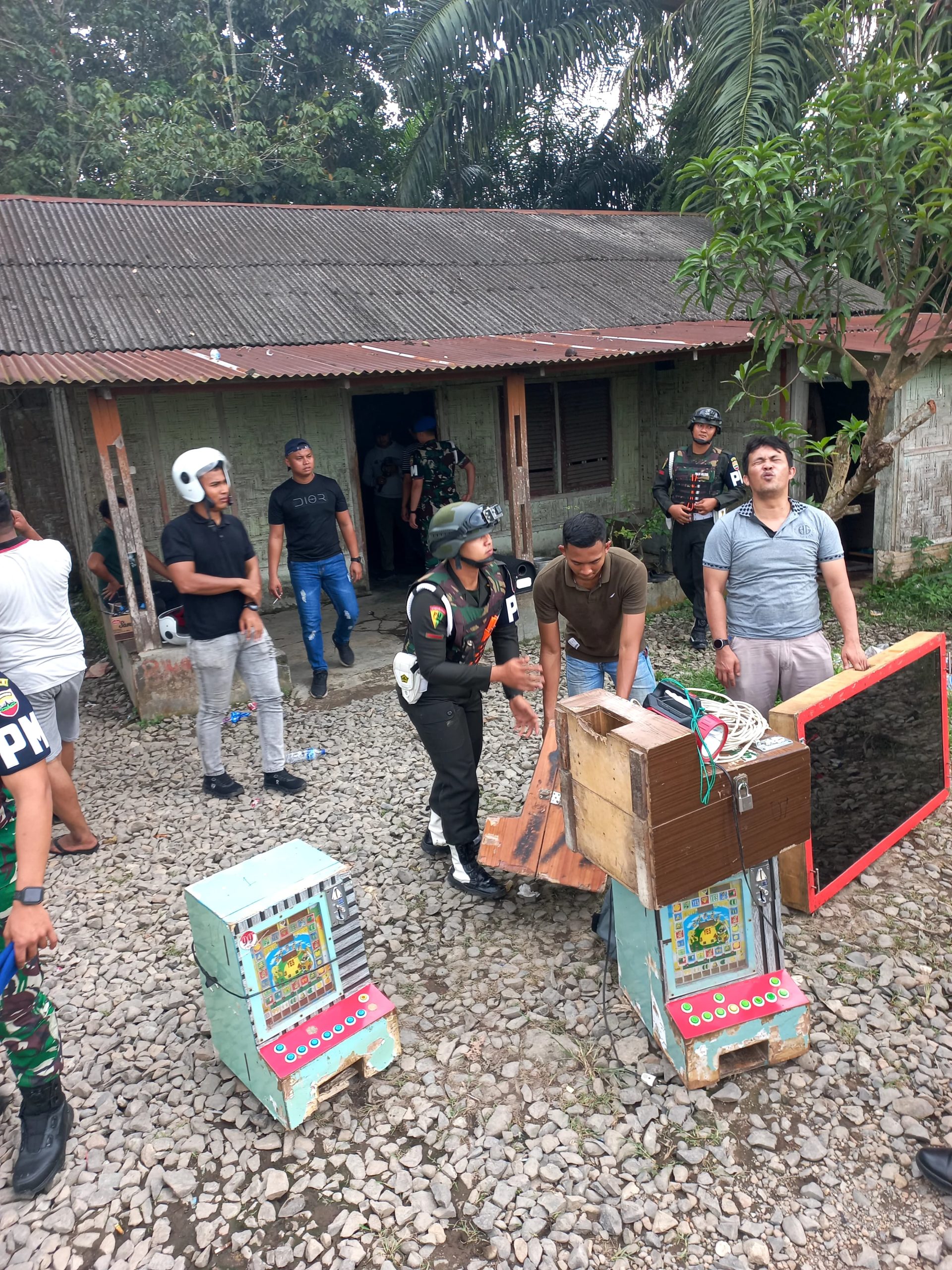 Meskipun sejumlah pengguna narkoba berhasil melarikan diri, petugas berhasil menangkap R dan mengamankan barang bukti berupa 2,5 gram sabu, 29 bong (alat hisap sabu), dan lima mesin jackpot. Dari tangkapan tersebut diyakini tdk ada anggota TNI yg terlibat.