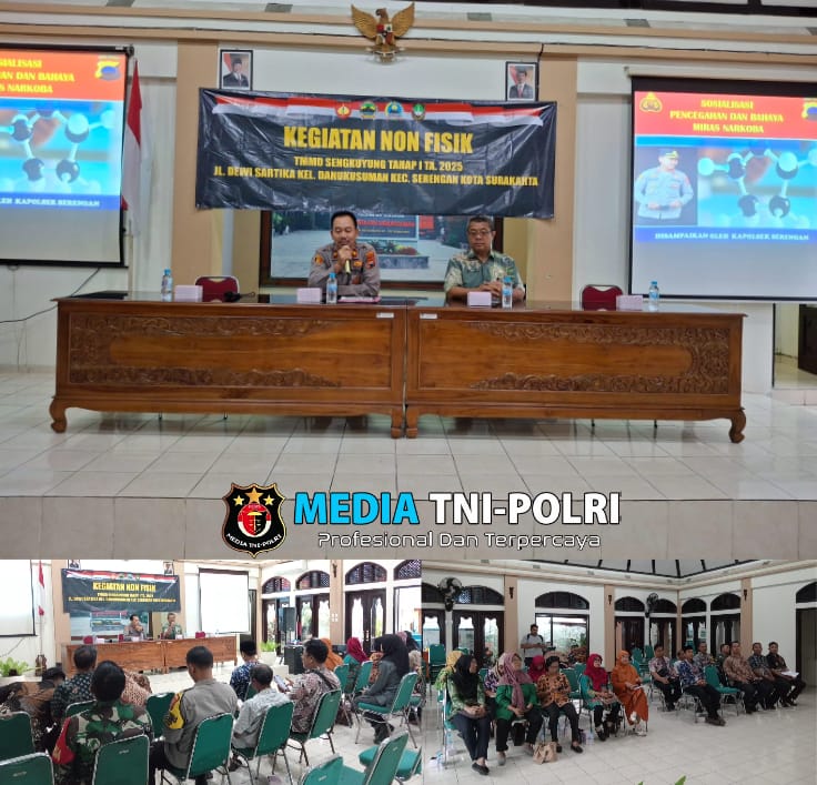 SURAKARTA // MEDIATNI-POLRI.COM / Babinsa Kelurahan Danukusuman Serda Tito Koramil 03/Serengan, Kodim 0735/Surakarta mengikuti kegiatan non fisik TMMD Sengkuyung tahap I tentang bahaya penyalah gunaan Narkoba bertempat dipendopo Kelurahan Danukusuman Kecamatan Serengan dengan nara sumber Kapolsek Serengan Kompol Widodo, SH, Jum’at (28/02/2025).