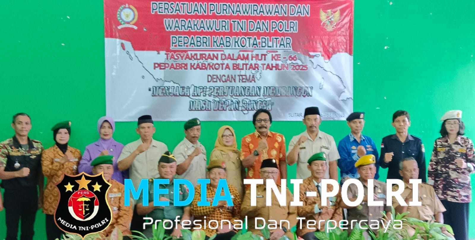 BLITAR // MEDIATNI-POLRI.COM / Persatuan Purnawirawan dan Warakawuri TNI-Polri (PEPABRI) Blitar menggelar acara tasyakuran memperingati Hari Ulang Tahun ke-66 tahun 2025 dengan mengusung tema “Menjaga Api Perjuangan, Membangun Masa Depan Bangsa”.