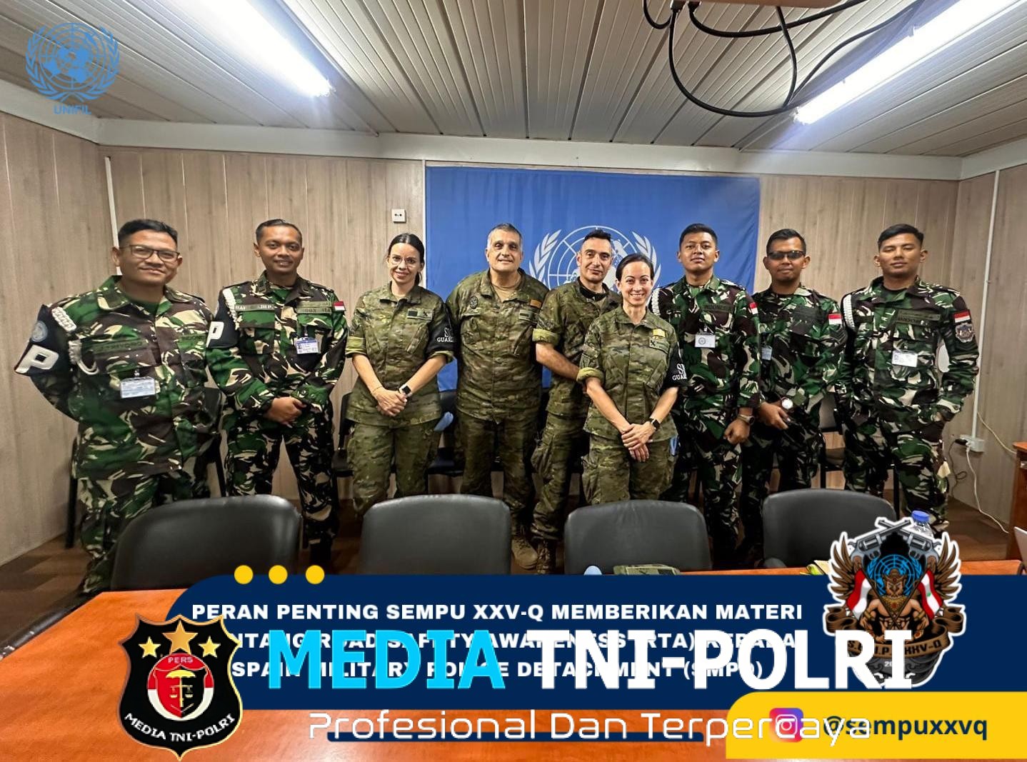 Blat, Lebanon Selatan // mediatni-polri.com / Bertempat di UNP 7-2, Satgas SEMPU XXV-Q memberikan materi Road Safety Awareness (RTA) kepada Spain Military Police Detachment (SMPD). Materi ini membahas kesadaran akan keselamatan di jalan raya yang mencakup pemahaman serta penerapan perilaku aman saat berkendara, baik sebagai pengemudi maupun penumpang di wilayah misi UNIFIL. (27/6/2025)