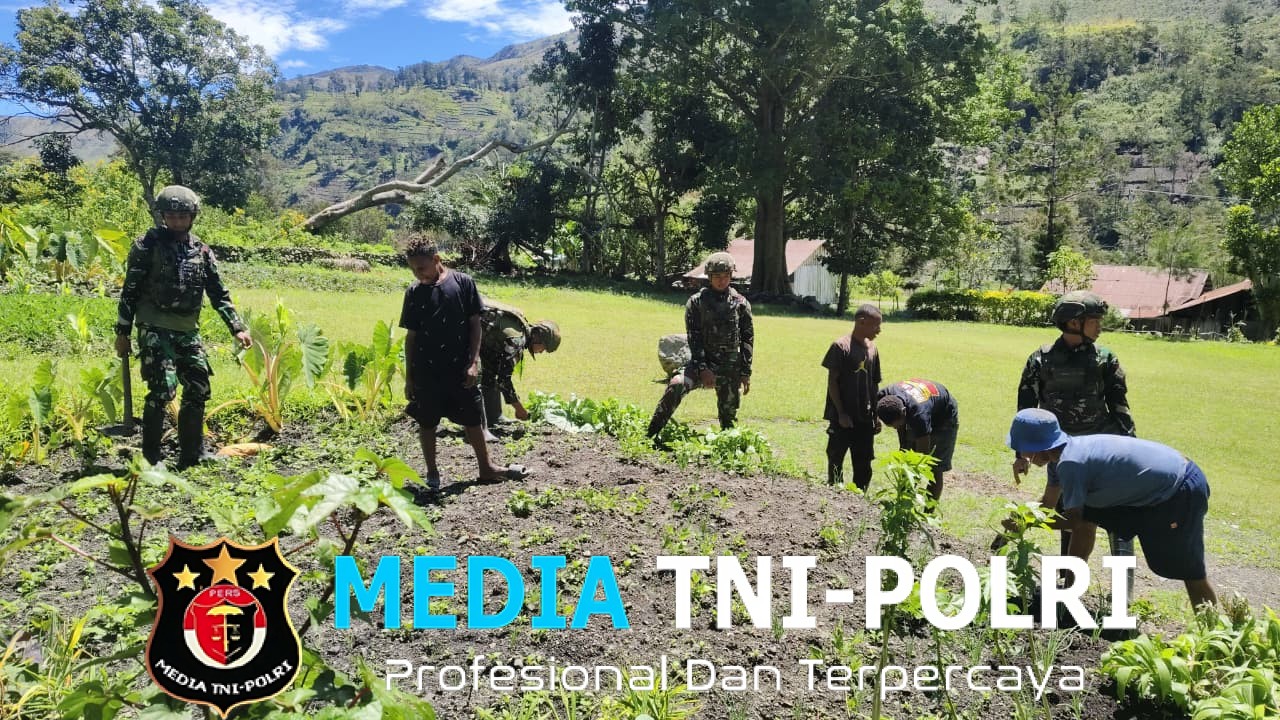 Personel Satgas bersama warga bahu-membahu mengolah lahan, menanam berbagai jenis tanaman pangan, serta memberikan edukasi sederhana terkait teknik bercocok tanam yang efektif.