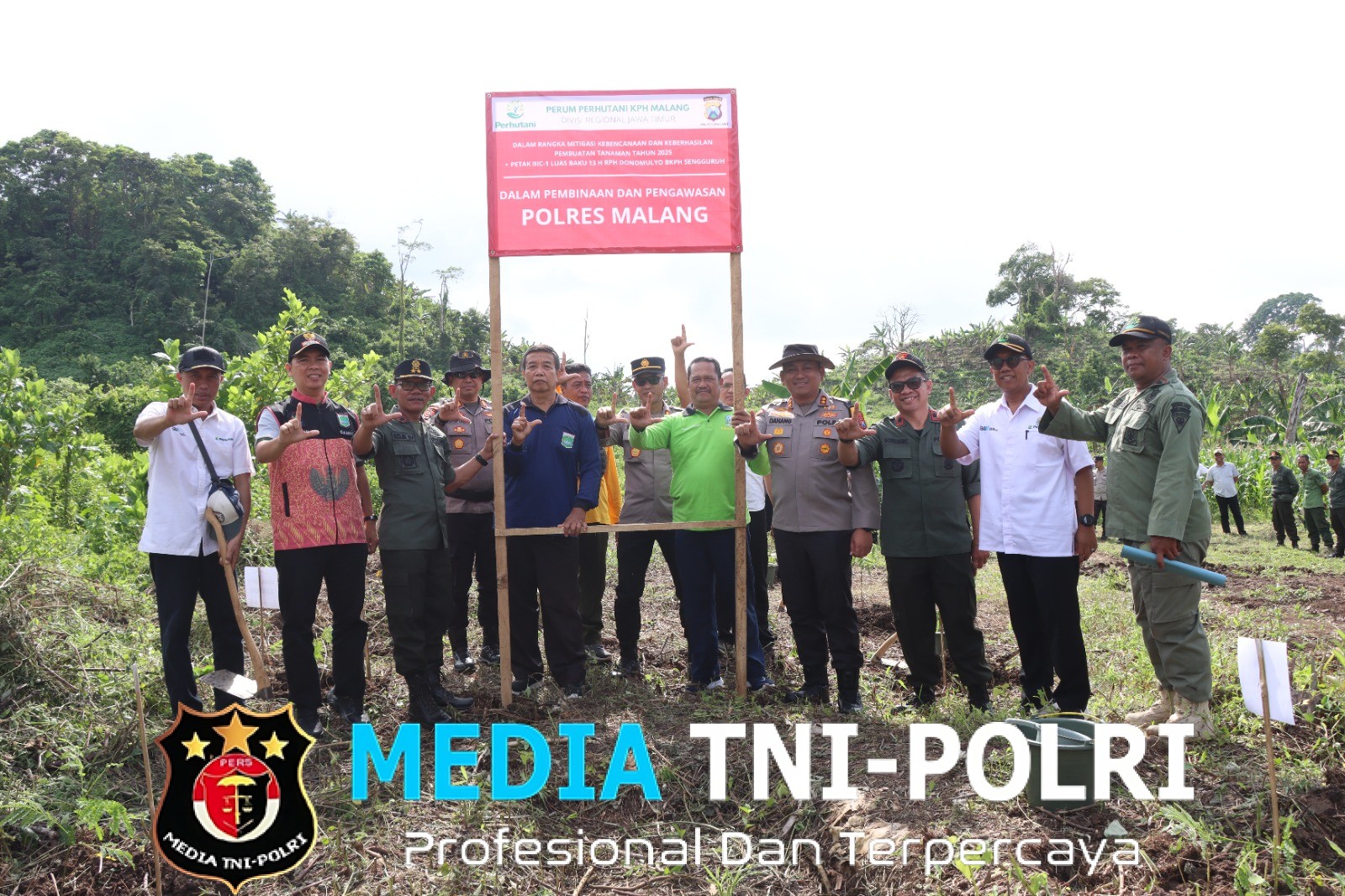 MALANG // MEDIATNI-POLRI.COM / Polres Malang bersama Perum Perhutani KPH Malang melakukan penanaman pohon di kawasan hutan Donomulyo, Kabupaten Malang, Jawa Timur, Rabu (24/12/2025).