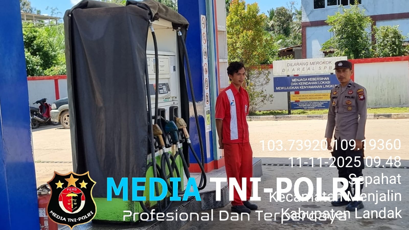 LANDAK // MEDIATNI-POLRI.COM / Ps. Kanit Samapta Polsek Menjalin Polres Landak Polda Kalbar Aipda G. Endisa melaksanakan kegiatan sambang disalah satu SPBU Desa Menjalin, Selasa (11/11/2025), Pagi.