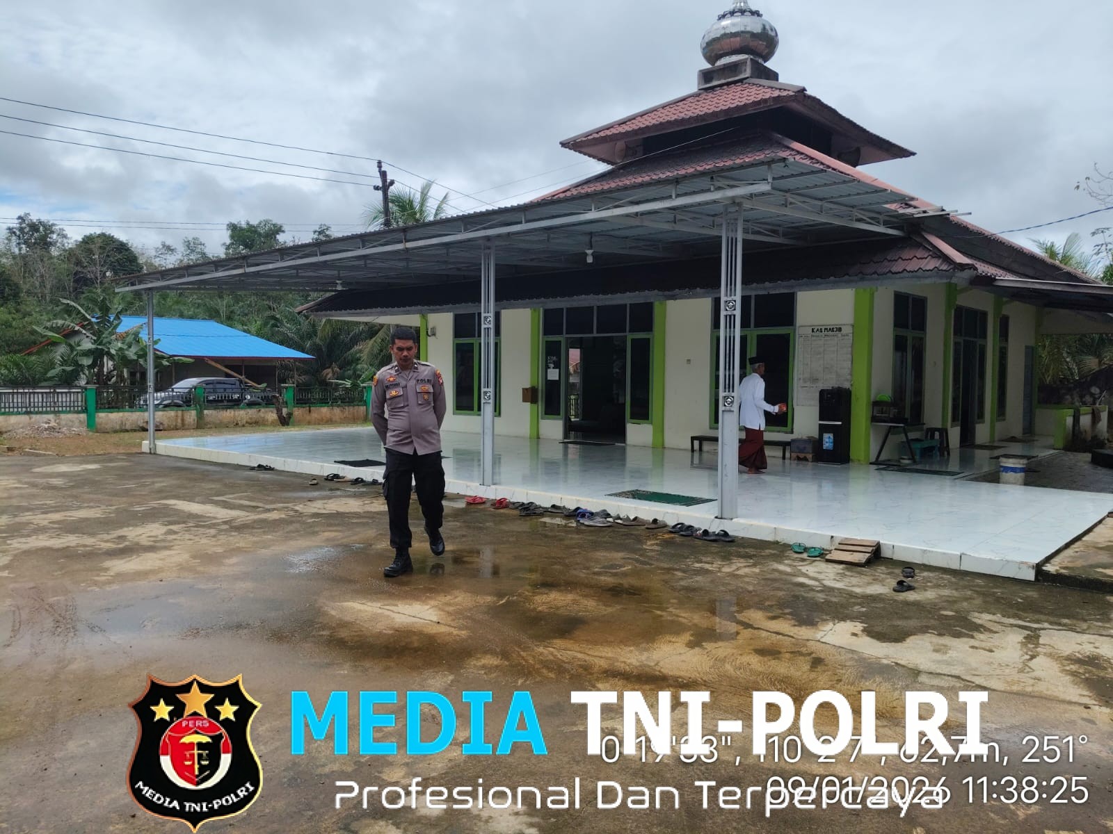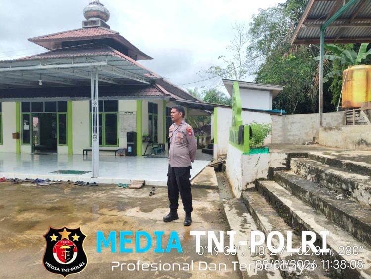 LANDAK // MEDIATNI-POLRI.COM / Polsek Ngabang – Polres Landak – Polda Kalbar, Personil Polsubsektor Jelimpo Polsek Ngabang menerjunkan personilnya untuk melaksanakan pengaturan arus lalu lintas dan pengamanan kegiatan ibadah sholat jumat yang ada di Wilayah hukumnya yaitu salah satunya di Masjid Baiturrahman Kecamatan Ngabang Terpantau aman Kondusif. Jumat (09/01/2026)