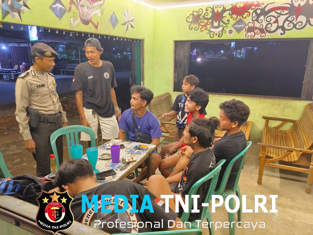 Saat berkeliling, petugas mendapati sejumlah warga yang tengah duduk nongkrong di warung sambil minum secangkir es Kesempatan itu tidak disia-siakan personel kepolisian untuk menyampaikan pesan kamtibmas.