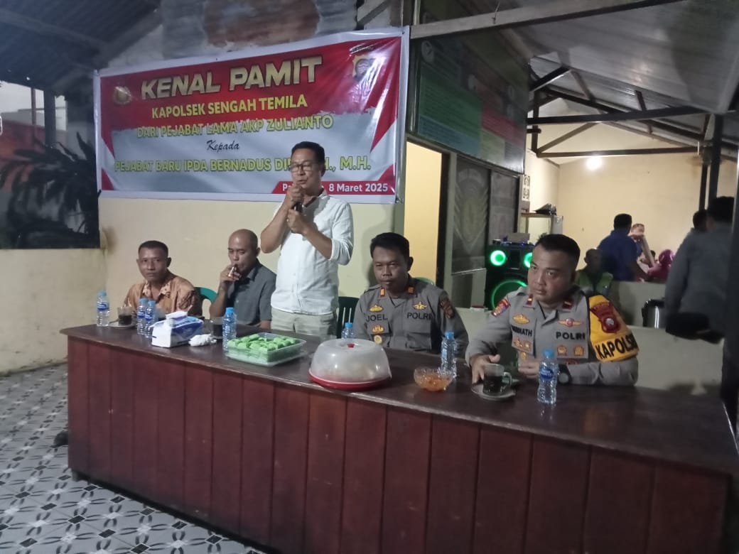 Jalannya acara dimulai dengan sambutan dari Kapolsek lama, AKP Zulianto, yang menyampaikan rasa terima kasih atas dukungan seluruh pihak selama masa jabatannya di Sengah Temila.