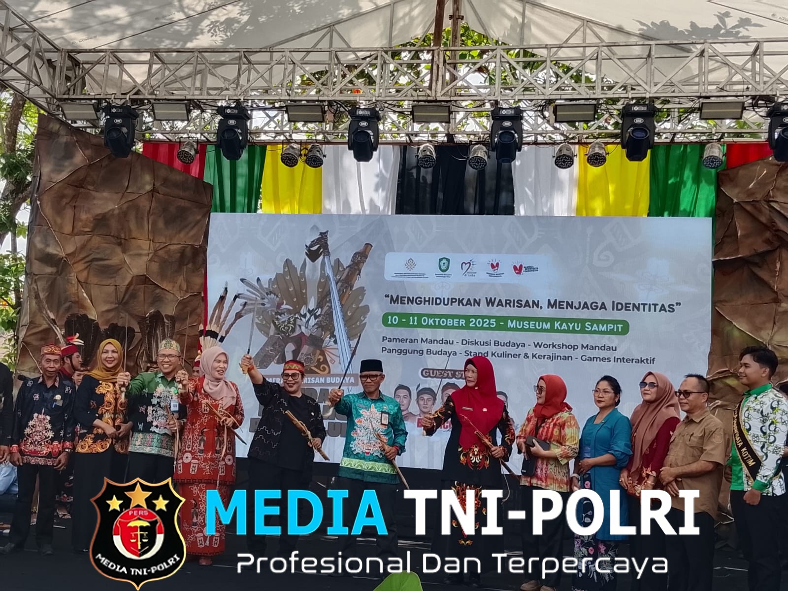 SAMPIT // MEDIATNI-POLRI.COM / Pembukaan pameran warisan budaya mandau pembelum di Museum kayu Sampit dibuka Pj Sekda Kotim Masri, dihadiri Riris Purbasari Kepala balai kelestarian Kebudayaan Wilayah III Kalselteng dan para undangan lainnya.