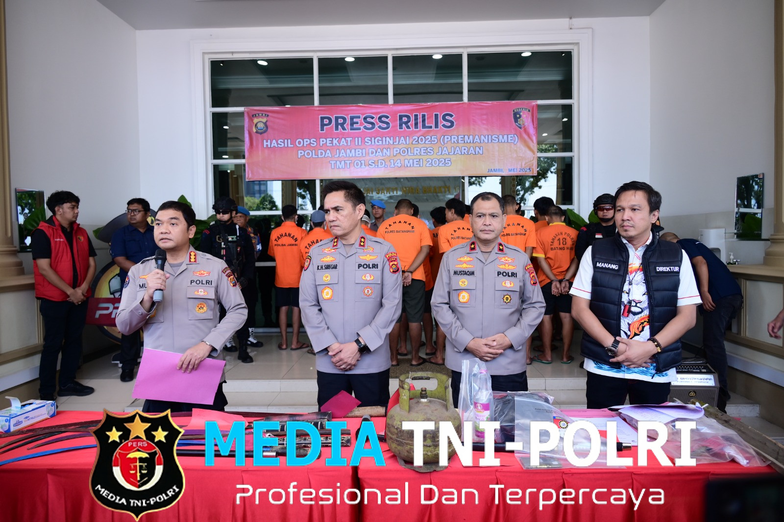 JAMBI // MEDIATNI-POLRI.COM / Polda Jambi bersama 10 Polres jajaran berhasil mengamankan 274 pelaku premanisme dalam pelaksanaan Operasi Penyakit Masyarakat (Pekat) Siginjai 2025 yang digelar sejak 1 hingga 14 Mei 2025.