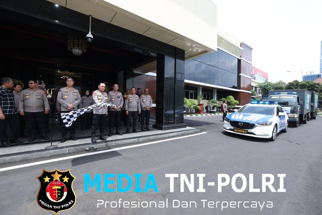 Pelepasan bantuan dipimpin langsung Wakapolda Jatim Brigjen Pol Dr. Pasma Royce, S.I.K., M.H., bersama Pejabat Utama Polda Jatim di depan Gedung Tribrata Mapolda Jatim, Jumat (21/11/2025).