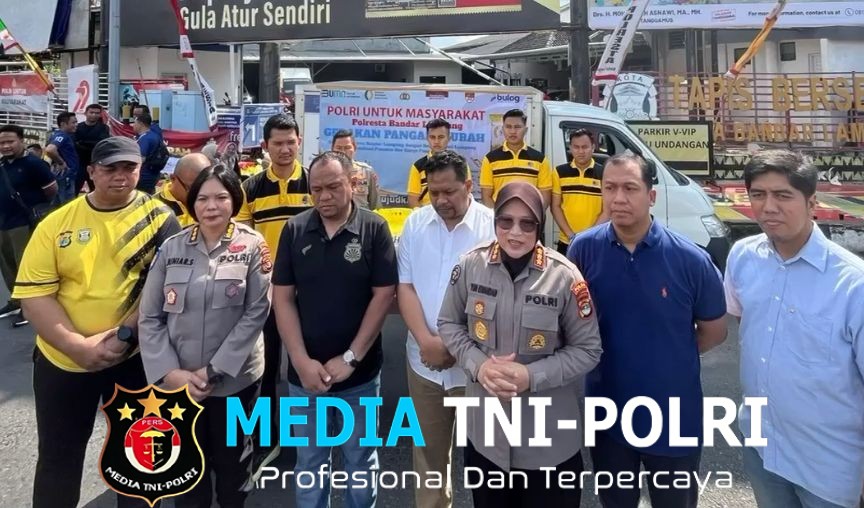 BANDAR LAMPUNG // MEDIATNI-POLRI.COM / Polda Lampung bersama Perum Bulog Kanwil Lampung menjual beras sebanyak 2,2 ton kepada masyarakat Bandar Lampung di Tugu Adipura, Minggu (10/8/2025).