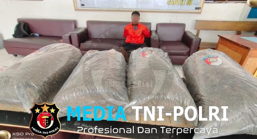 Di lokasi tersebut, petugas menemukan puluhan kilogram ganja yang tersimpan dalam beberapa tas dan karung, termasuk ratusan plastik bening ukuran 1 kilogram yang diduga kuat digunakan untuk mengemas ganja.