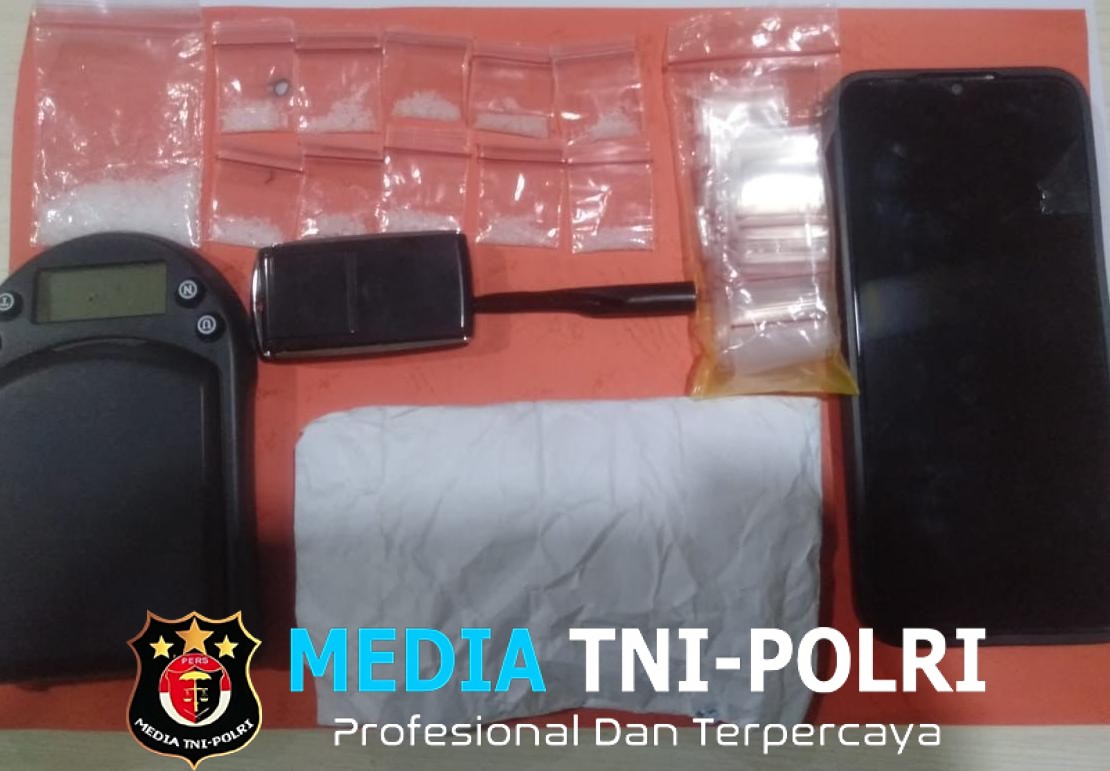 Di antaranya 11 paket sabu siap edar dengan total berat 4,34 gram, 1 bungkus plastik berisi ganja seberat 81,79 gram,