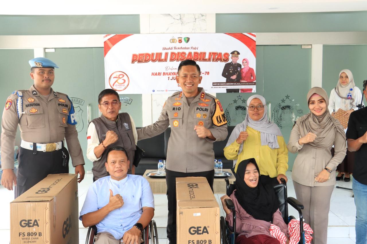 Kapolres Bogor juga memberikan berupa kebutuhan para disabilitas diantaranya alat bantu, sembako, dan tali asih kepada para penyandang disabilitas sebagai wujud nyata dari rasa syukur dan kepedulian. Acara ditutup dengan sesi foto bersama dan pengecekan kesehatan oleh Tim Si Dokkes Polres Bogor.