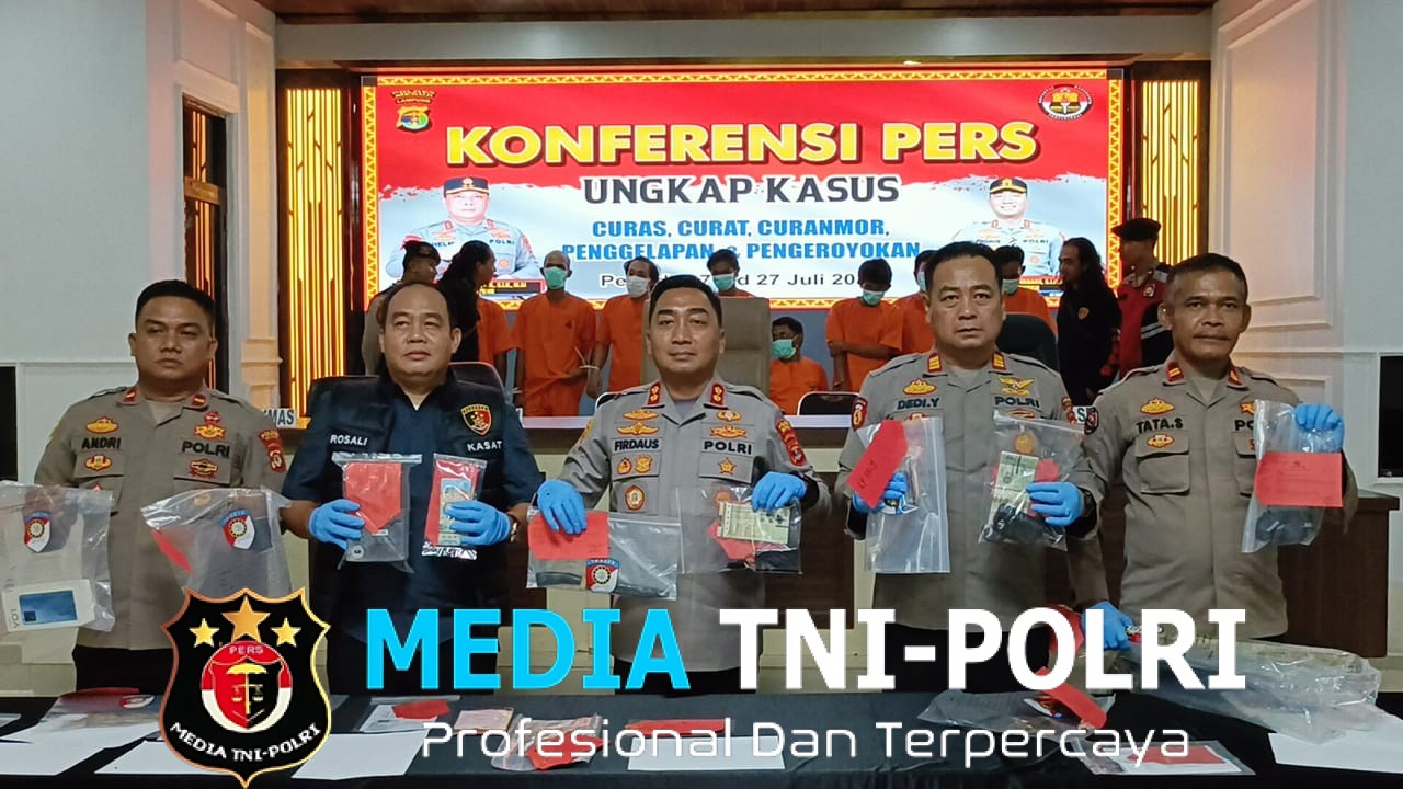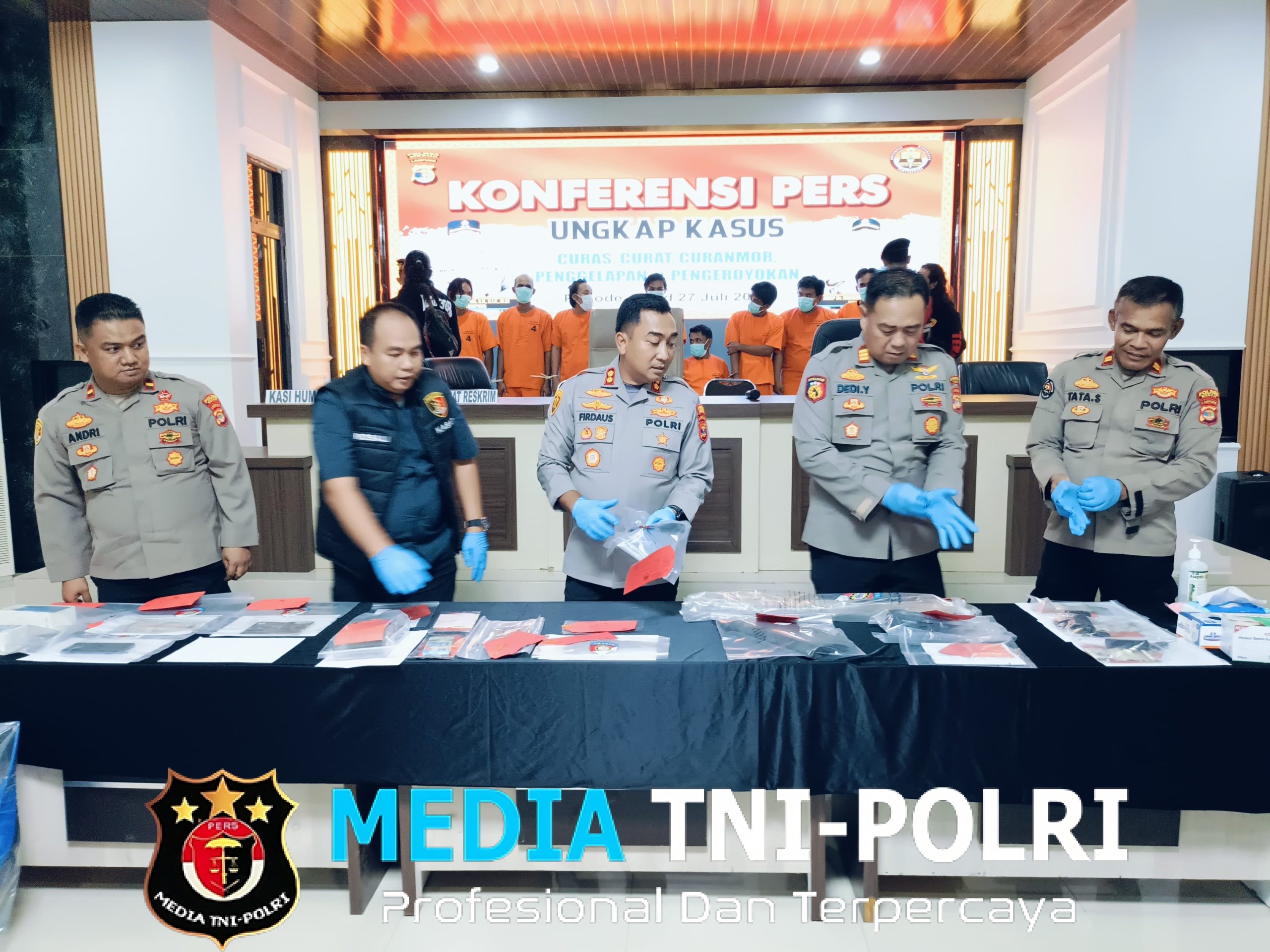 MESUJI LAMPUNG // MEDIATNI-POLRI.COM / Jajaran Polres Mesuji Melaksanakan konferensi pers atas keberhasilan nya mengungkap 7 laporan polisi (LP) ; 2 LP Curas, 2 LP Curat, 1 LP Curanmor,