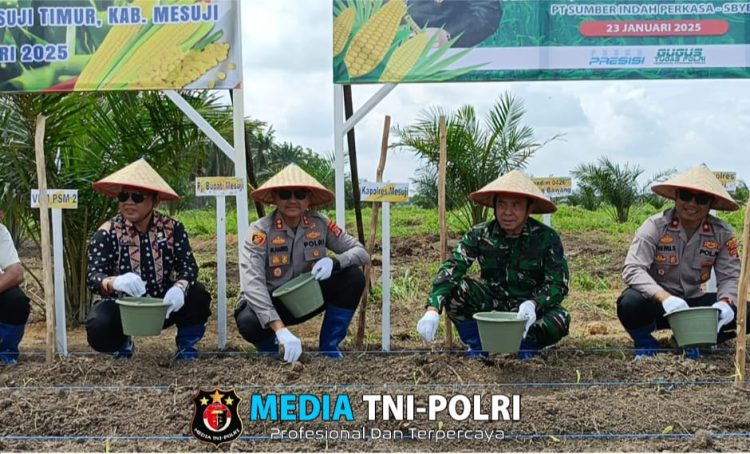 MESUJI LAMPUNG // MEDIATNI-POLRI.COM / Sebagai tindak lanjut, Jajaran Polres Mesuji bersama Stakeholder terkait, Pemerintah Daerah, dan Perusahaan PT. SIP melaksanakan Program menanam jagung 1 Juta Hektar di areal milik PT. Sumber Indah Perkasa (SIP) seluas 6 Hektar secara tumpang sari, Desa Talang Batu, Kecamatan Mesuji Timur, Kabupaten Mesuji.