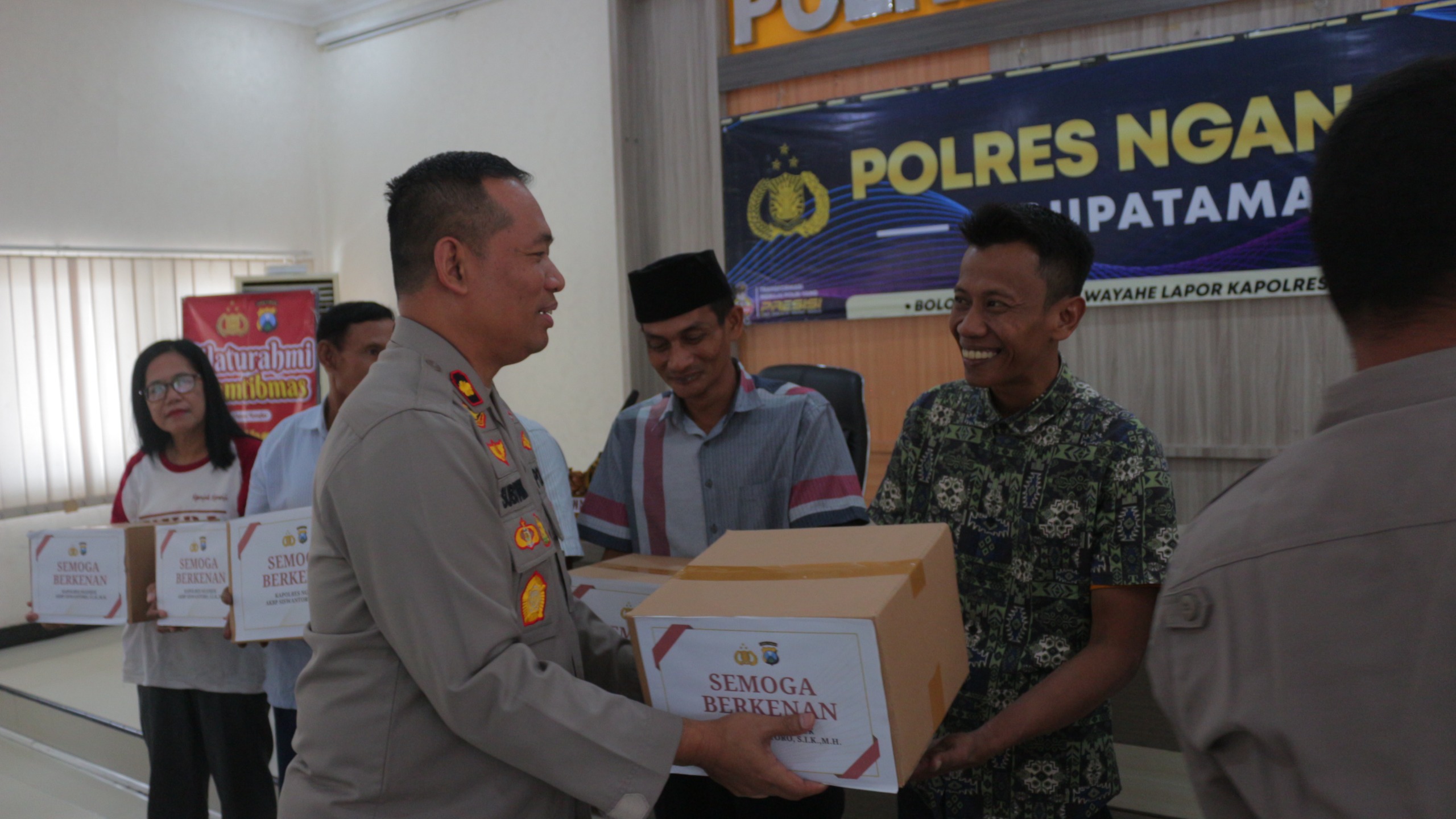 Penyerahan bantuan dipimpin oleh Kapolres Nganjuk, AKBP Siswantoro, S.I.K., M.H.,