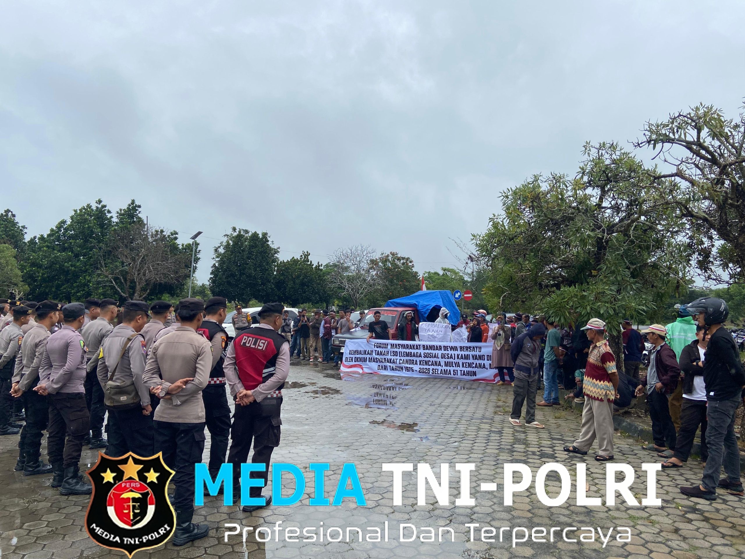 TULANG BAWANG BARAT // MEDIATNI-POLRI.COM / Polres Tulang Bawang Barat Polda Lampung melakukan pengamanan kegiatan Aksi Damai Penyampaian Aspirasi Forum Masyarakat Bandar Dewa Bersatu (FMBB) terkait permasalahan Sengketa tanah Lembaga Sosial Desa (LSD) Tiyuh Bandar Dewa bertempat di Kantor Pemerintah Daerah dan Kantor DPRD Kabupaten Tulang Bawang Barat, Senin (02/01/2026).