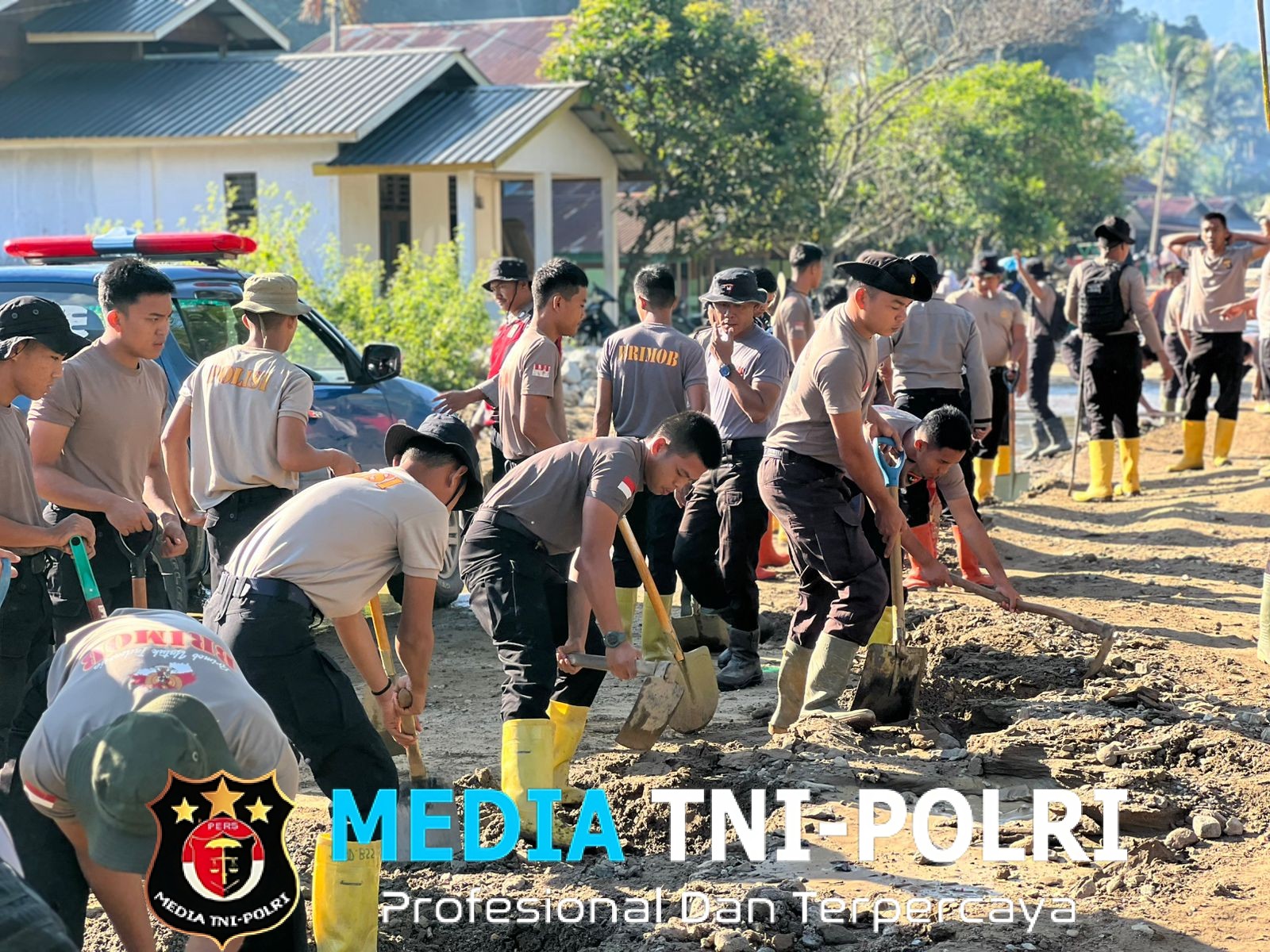 SUMATERA BARAT // MEDIATNI-POLRI.COM / Pada hari Minggu, 18 Januari 2025, Tim SAR Resimen II Pasukan Pelopor BKO Polda Sumbar melaksanakan kegiatan pembersihan area di sekitar sungai yang terdampak bencana banjir bandang di Desa Kampung Tengah, Kecamatan Palembayan, Kabupaten Agam, Provinsi Sumatera Barat.