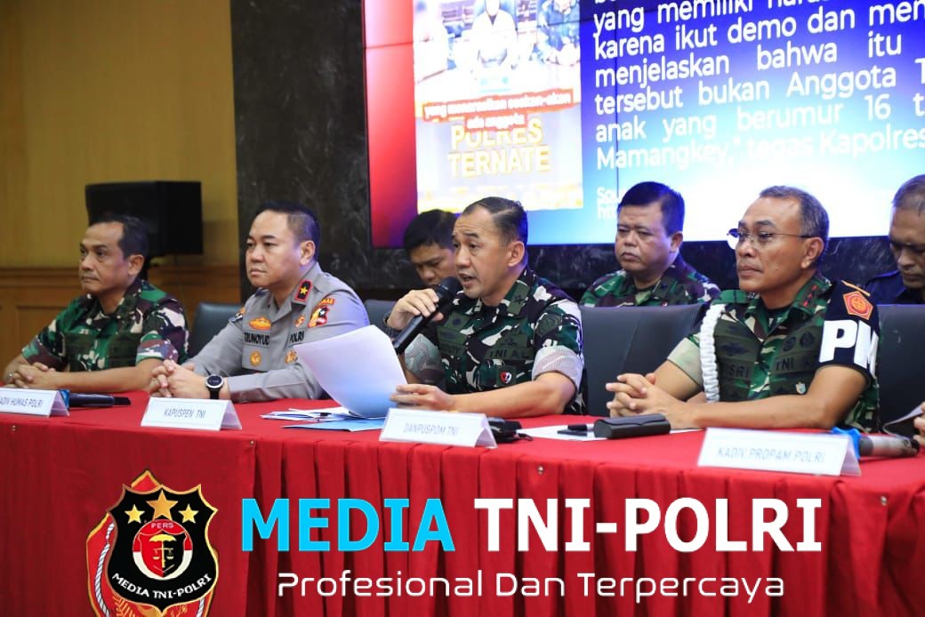 serta turut hadir Karoprovos Divpropam Polri Brigjen. Pol. Naek Pamen Simanjuntak dalam konferensi pers yang digelar di Balai Wartawan Puspen TNI, Mabes TNI, pada Jumat (5/9/2025).