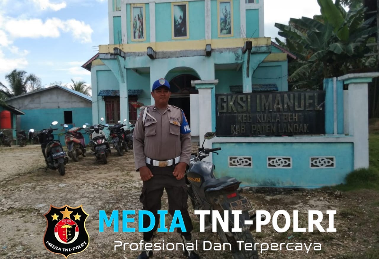 LANDAK // MEDIATNI-POLRI.COM / Polsek Kuala Behe – Polres Landak, Kegiatan pengamanan ibadah oleh Anggota piket Polsek Kuala Behe merupakan kegiatan rutin yang dilaksanakan setiap hari minggu di Kecamatan Kuala Behe, Minggu (27/07/2025).