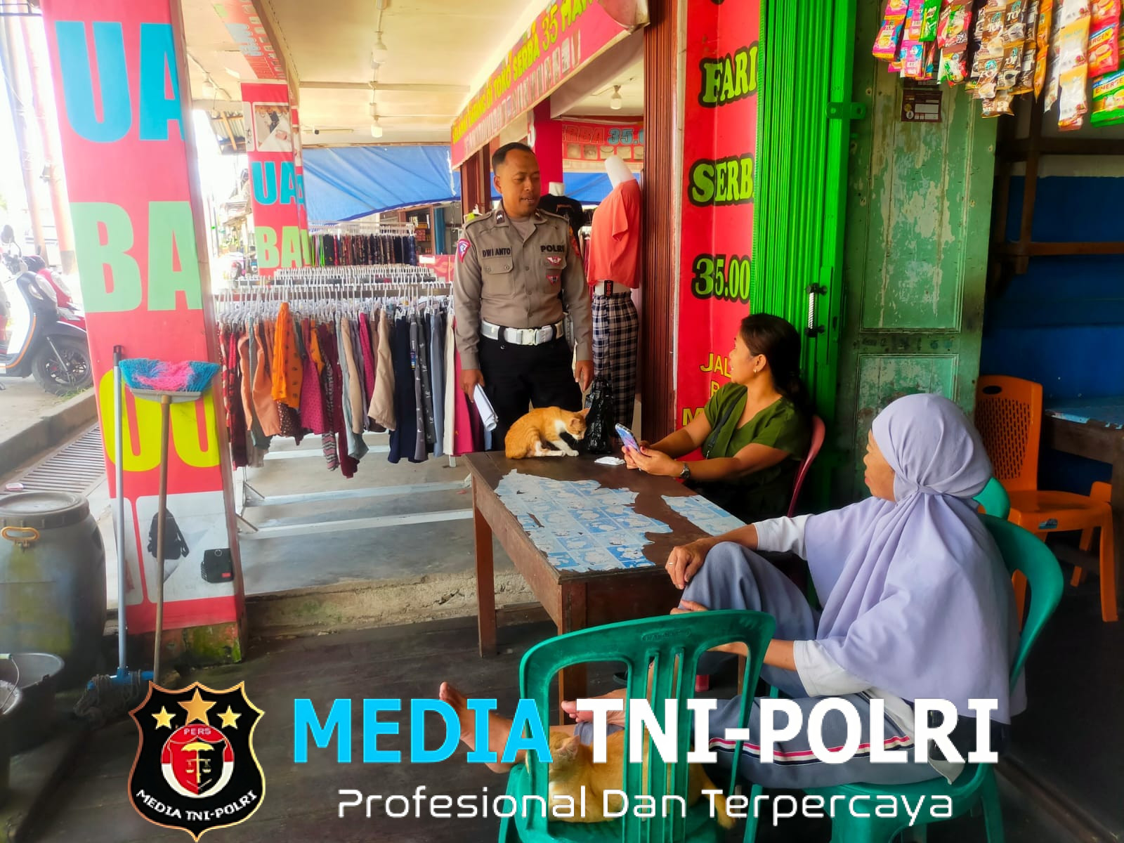 aparat kepolisian terlihat berinteraksi langsung dengan warga di warung kopi dan pasar tradisional.