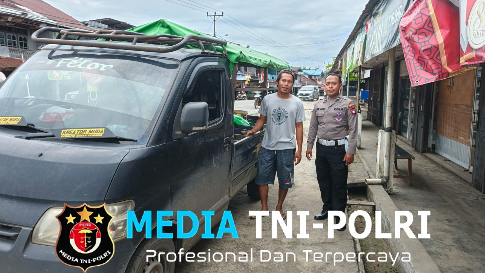 Pada Kamis (21/8/2025), petugas menyempatkan diri menyapa warga, termasuk pedagang sayur keliling dan pengendara mobil,