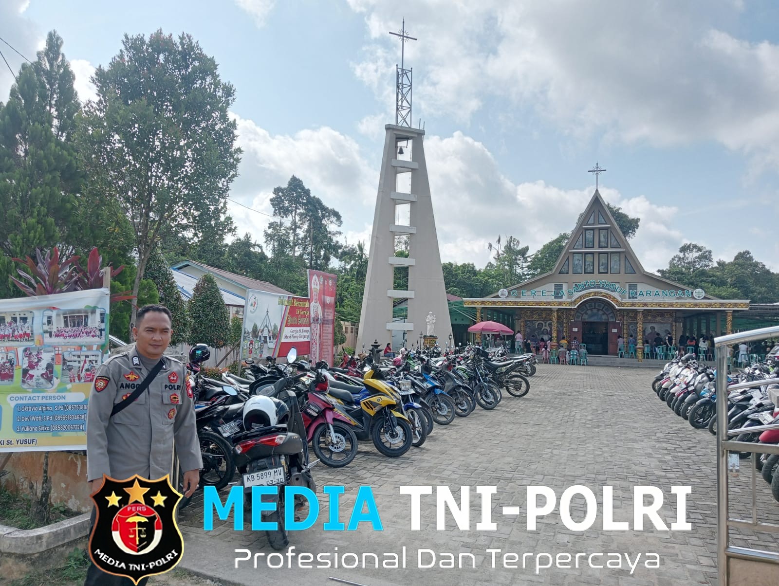 personil Polsek Mempawah Hulu melaksanakan pengamanan ibadah misa minggu .Minggu 20/7/2025