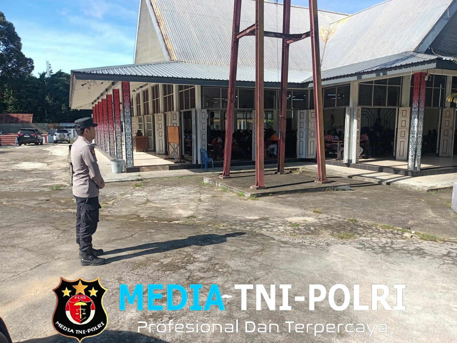 MENJALIN // MEDIATNI-POLRI.COM / Personel Polsek Menjalin melaksanakan pengamanan kegiatan Ibadah Misa Minggu di Gereja Paroki Santo Petrus dan Paulus Menjalin, Desa Menjalin, Kecamatan Menjalin, Kabupaten Landak, pada Minggu (07/12/2025) pukul 08.00 WIB.