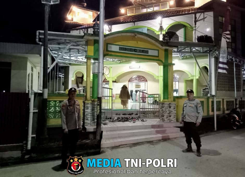 MENYUKE, LANDAK // MEDIATNI-POLRI.COM / Kepala sentral pelayanan kepolisian regu II Polsek Menyuke Aipda Eko Muslimin beserta Anggota Aiptu Yessy Hananto melaksanakan pengamanan di sejumlah tempat Sholat yang ada di Kecamaatan Menyuke,