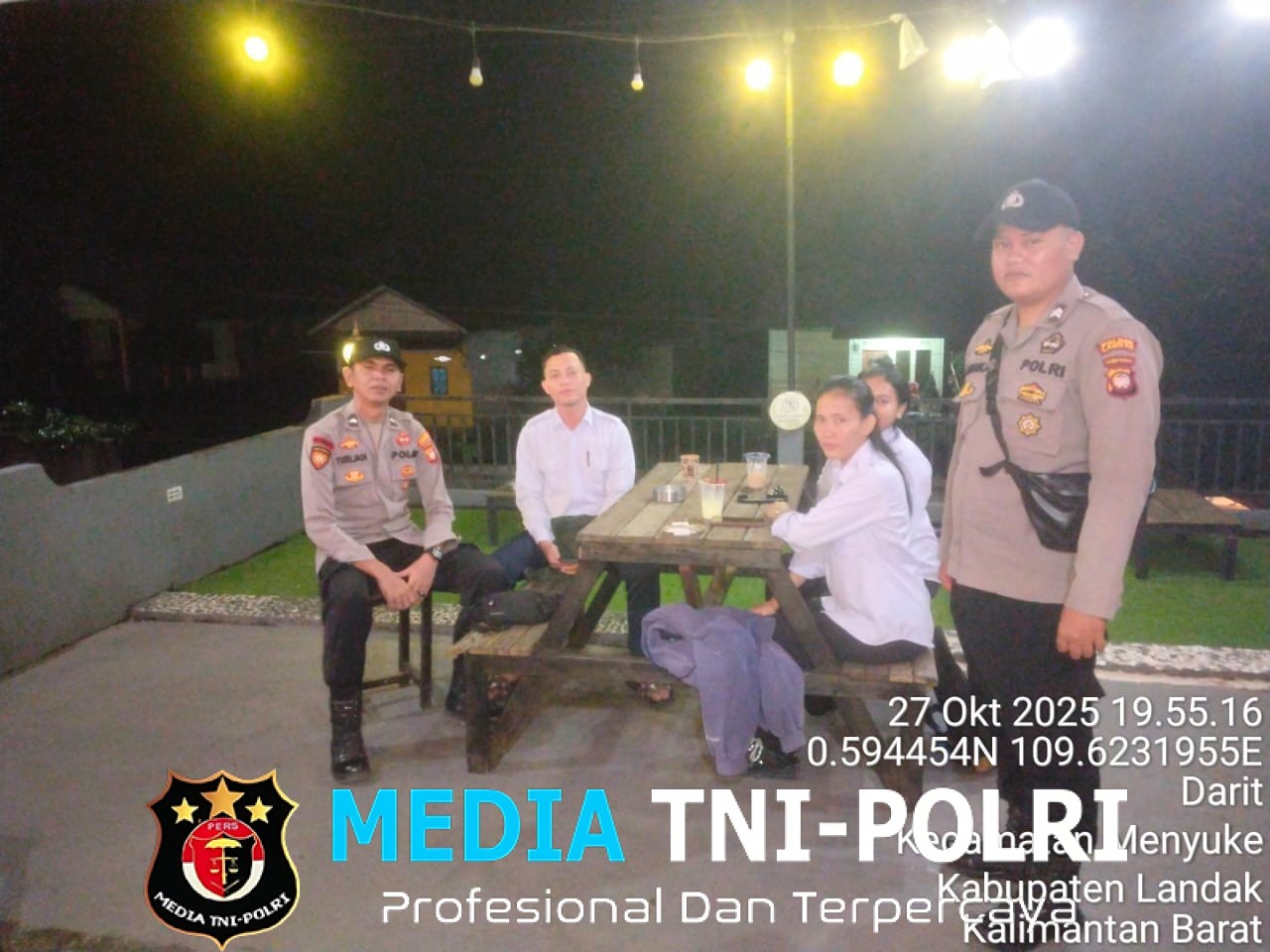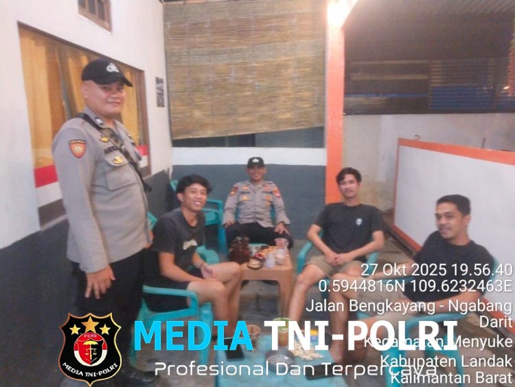 LANDAK // MEDIATNI-POLRI.COM / Untuk menjaga keamanan dan ketertiban masyarakat Menjelang siang hari Kepala Sentral Pelayanan Kepolisian Terpadu Regu I Polsek Menyuke dan Anggota melaksanakan kegiatan patroli di malam hari di Desa Darit, Senin (27/10/2025) Malam.