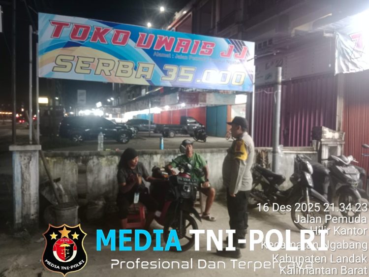 LANDAK // MEDIATNI-POLRI.COM / Polsek Ngabang – Polres Landak – Polda Kalbar, Dalam upaya menjaga keamanan dan ketertiban masyarakat (Kamtibmas), jajaran Polsek Ngabang melaksanakan patroli malam hari di sejumlah titik rawan di wilayah Kota Ngabang, Kabupaten Landak, Selasa malam (16/12/2025).